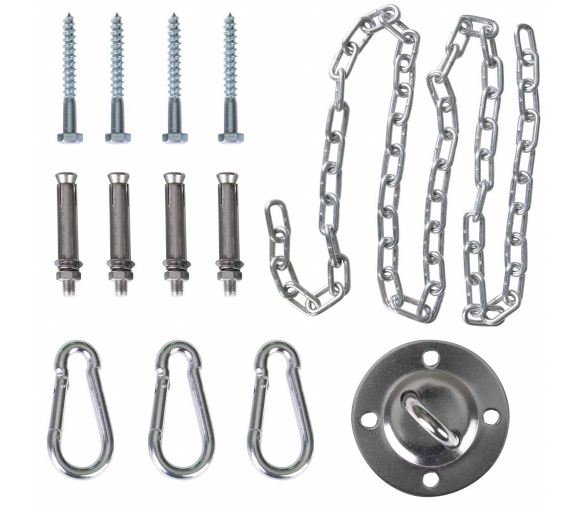 Sada pro uchycení Aga je složena z kvalitních komponentů usnadňujících montáž závěsných křesel, houpacích sedaček a vaků.