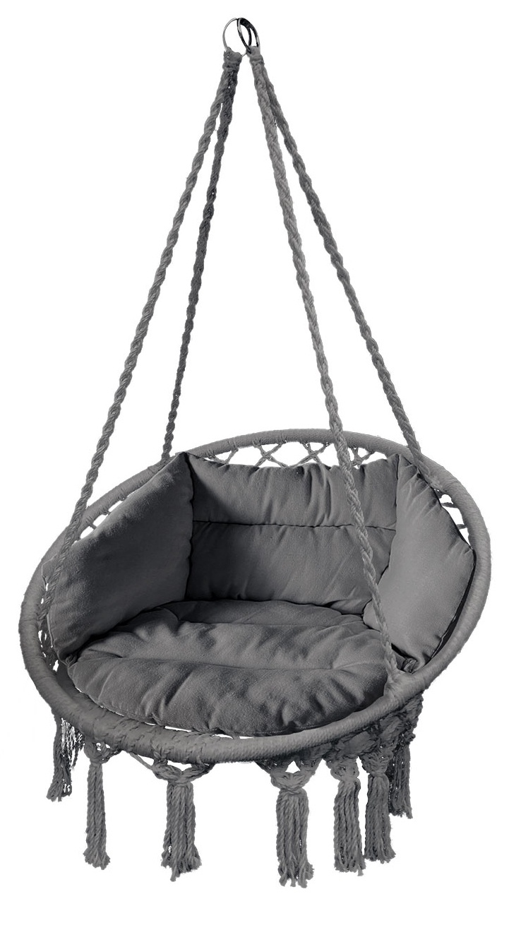 Závěsný koš v sobě spojuje komfort a nejnovějšími designovými trendy. Zajímavá konstrukce v kombinaci s uzlovými dekoracemi bez pochyby podtrhne design každého interiéru či exteriéru.