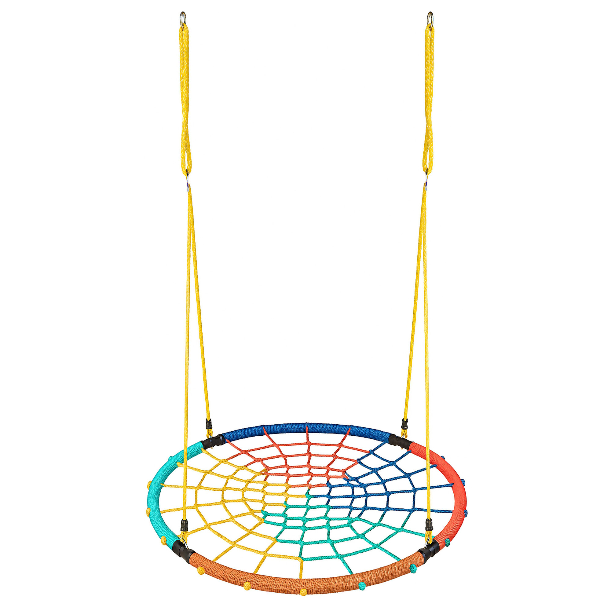 Houpací kruh s průměrem 100 cm je dostatečně velký na to, aby se mohly houpat i dvě děti najednou. Nosnost kruhu je 150 kg.