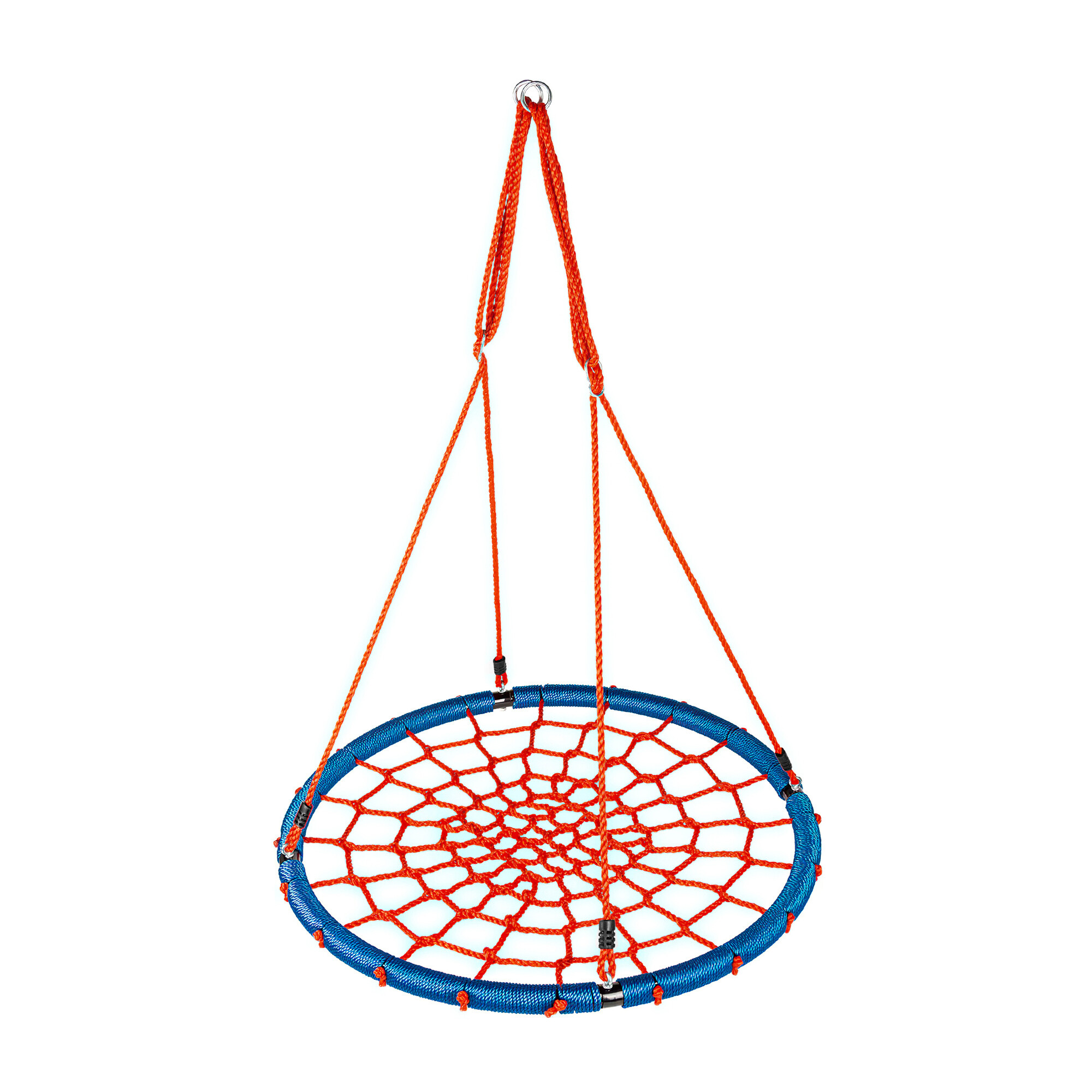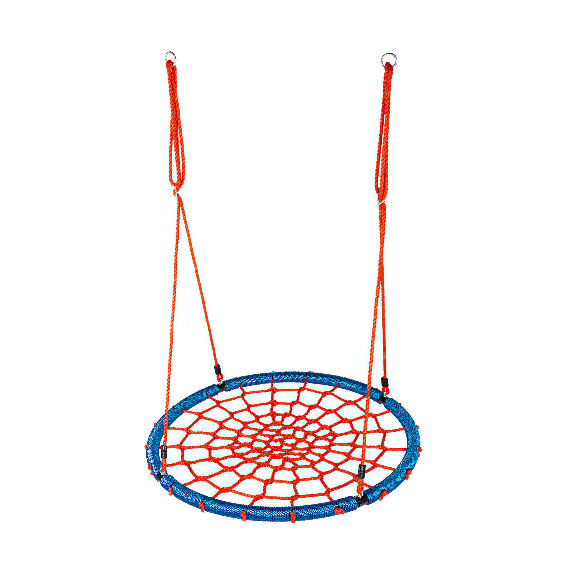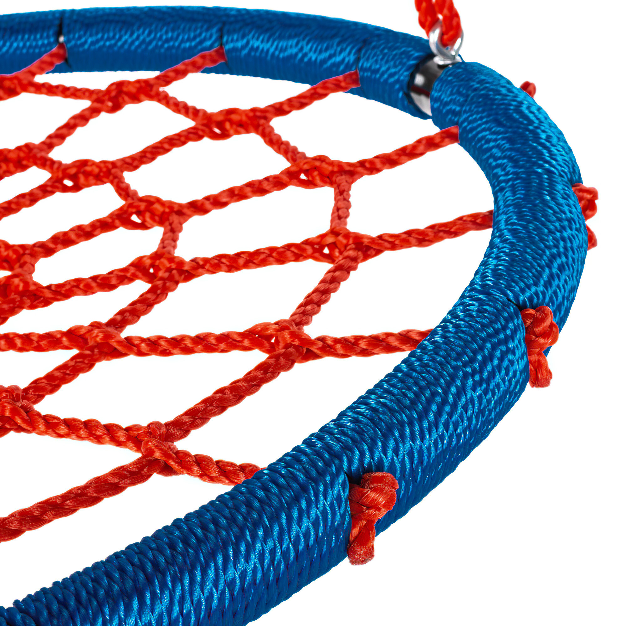 Sedák je vypletený provazovou sítí, kovový rám je rovněž chráněný provazem. Výšku houpacího kruhu lze plynule nastavit pomocí závěsných lan.
