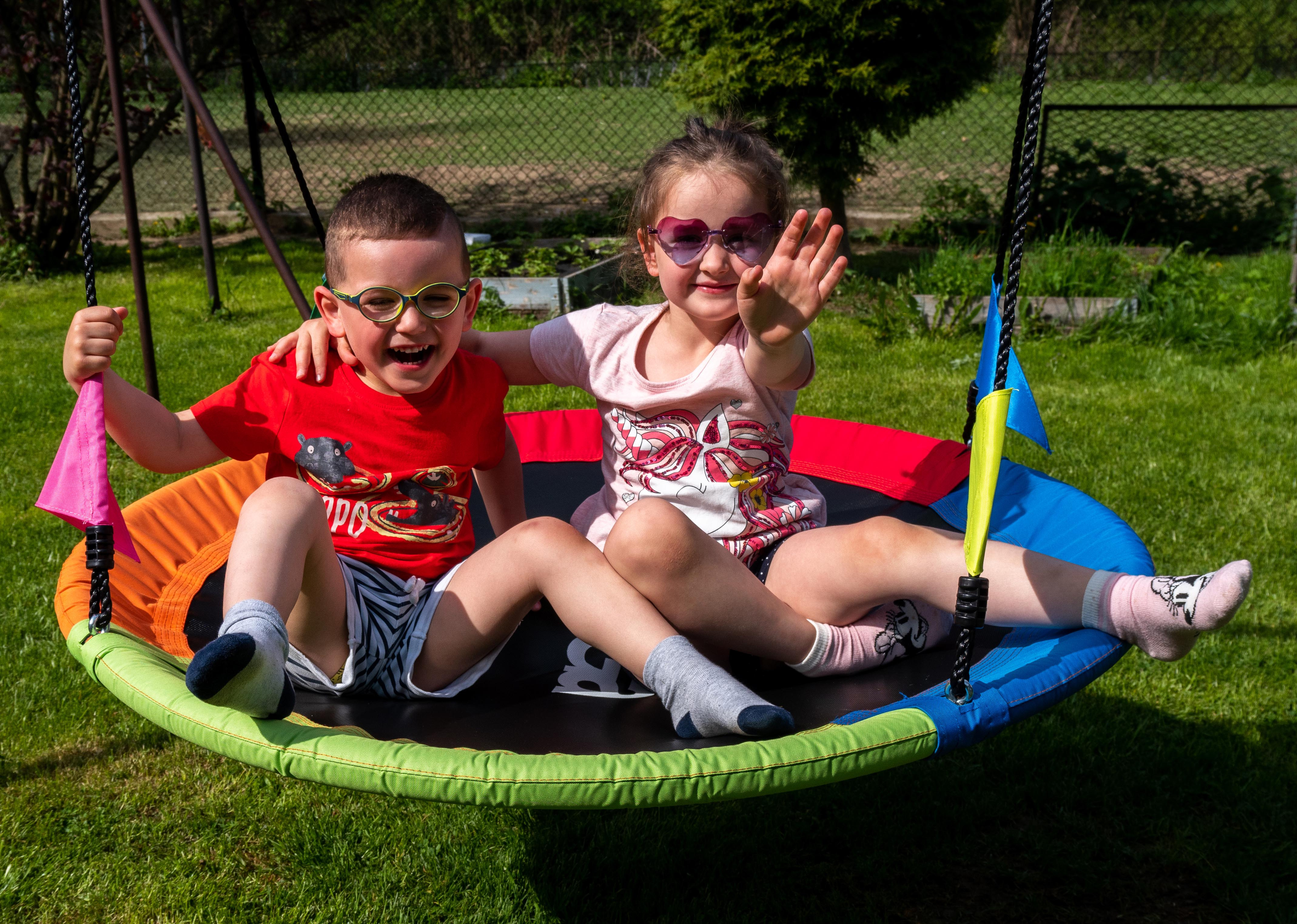 Ať už venku nebo v interiéru, tato houpačka s výškou 1,8 m poskytuje dokonalou zábavu pro celou rodinu.