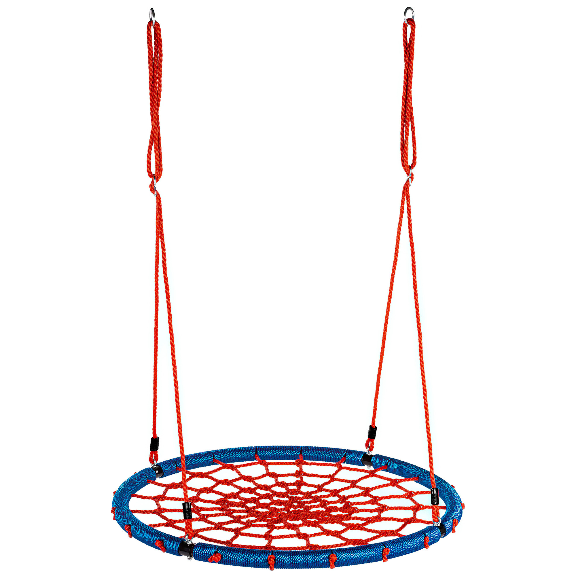 Sedák je vypletený provazovou sítí, kovový rám je rovněž chráněný provazem. Výšku houpacího kruhu lze plynule nastavit pomocí závěsných lan.