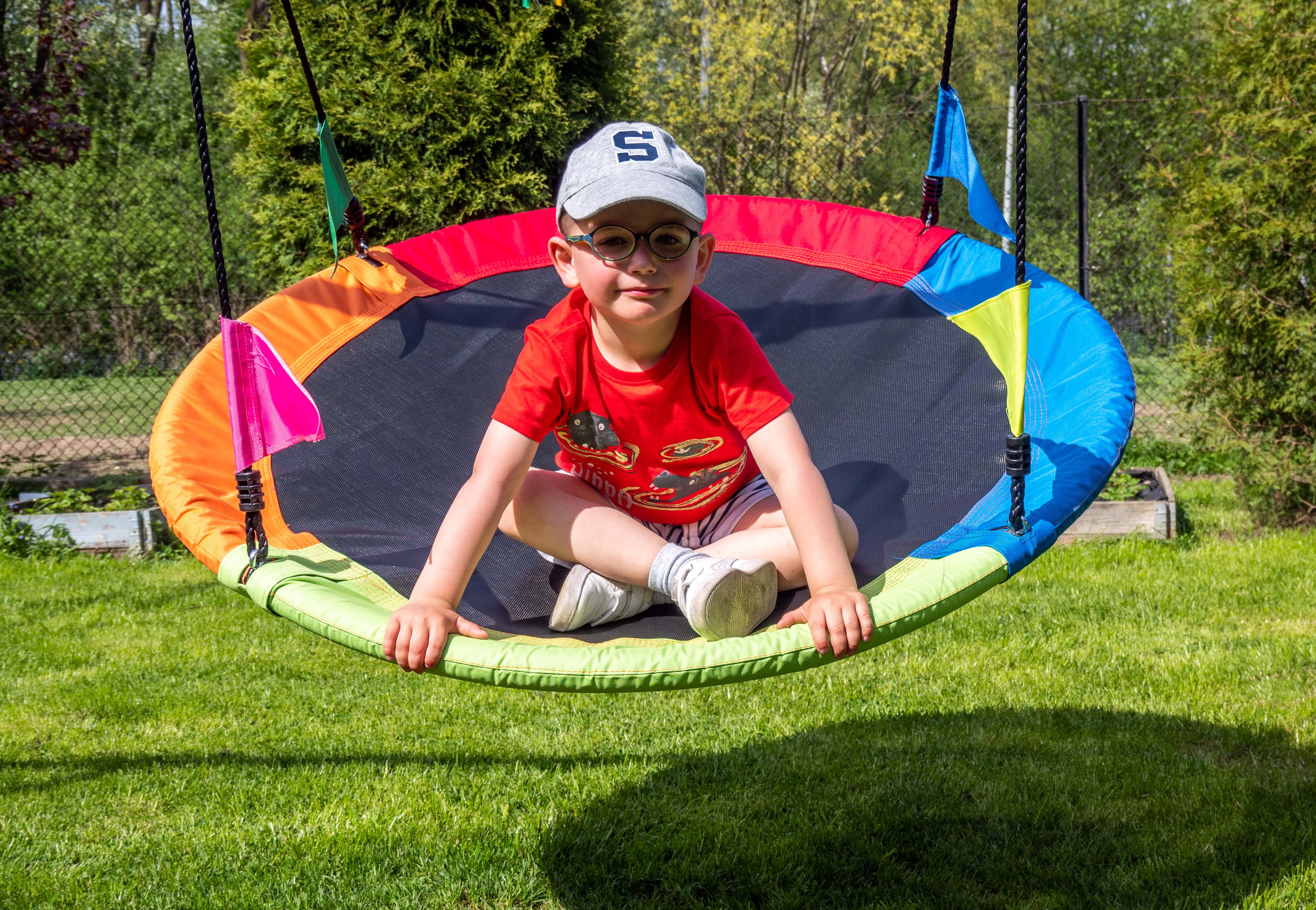 Výšku houpacího kruhu lze plynule nastavit pomocí závěsných lan.