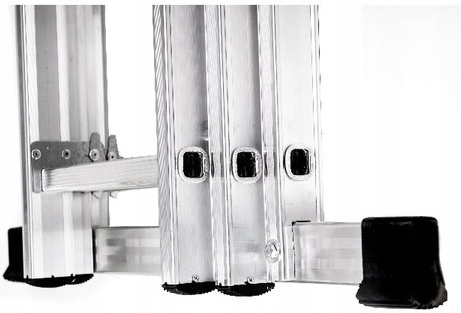Žebřík lze sestavit jako štafle, výsuvný, opěrný nebo schodišťový žebřík. Široká stabilizační základna dovoluje práci i na nerovném terénu.
