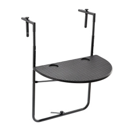 Stůl je vyroben z odolného materiálu, který je navržen tak, aby vydržel i náročné podmínky venkovního prostředí. Černá barva dodává stolu elegantní vzhled, který dokonale splyne s okolím vašeho balkonu.