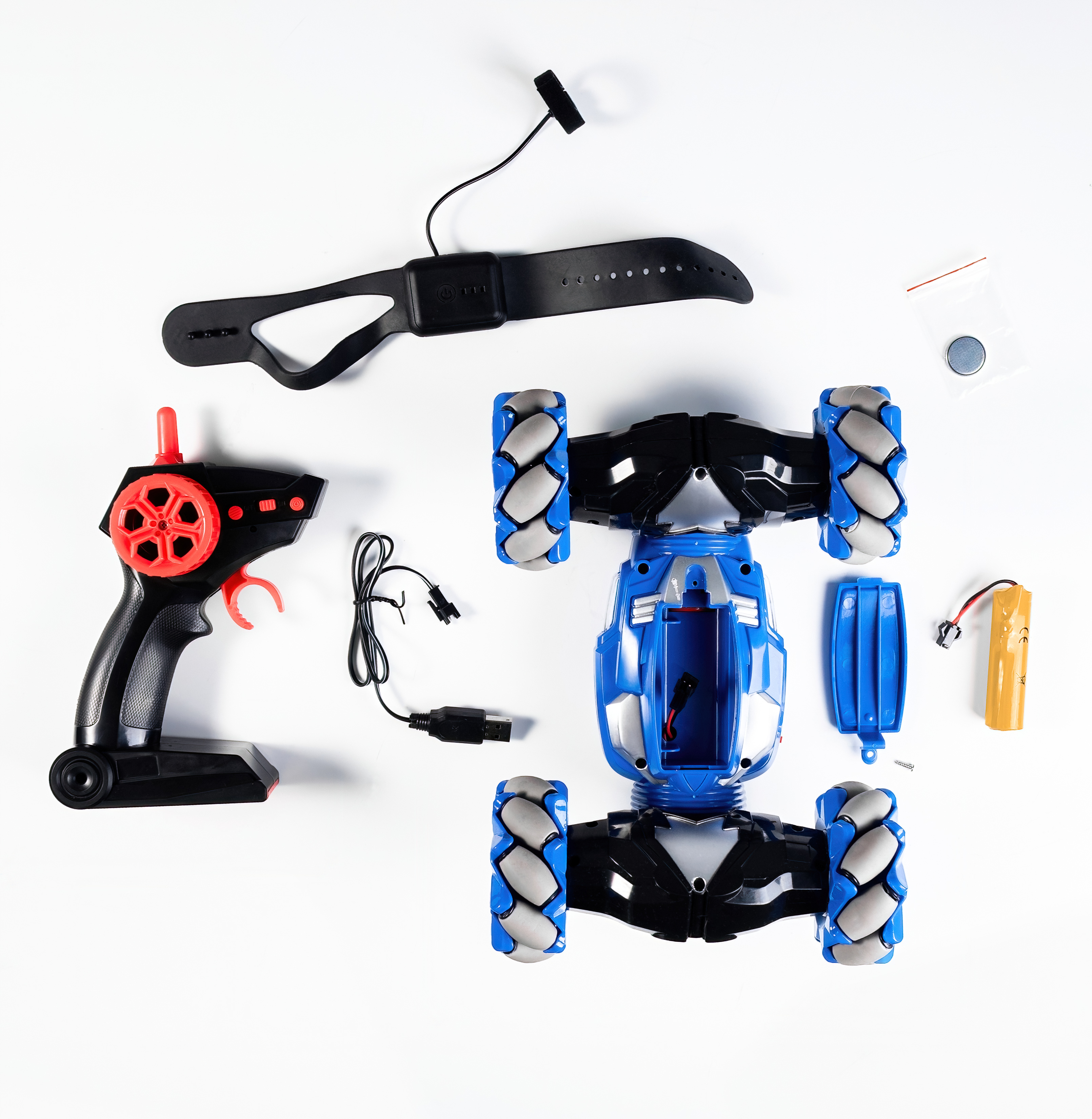 RC model autíčka má dva dálkové ovládání buď pomocí dálkového ovladače, nebo pomocí náramku s pohybovým ovládáním. Ovládání pohybem ruky se auto pohybuje dopředu, dozadu nebo do stran v závislosti na umístění vaší ruky díky pohybovému senzoru zabudovanému v náramku