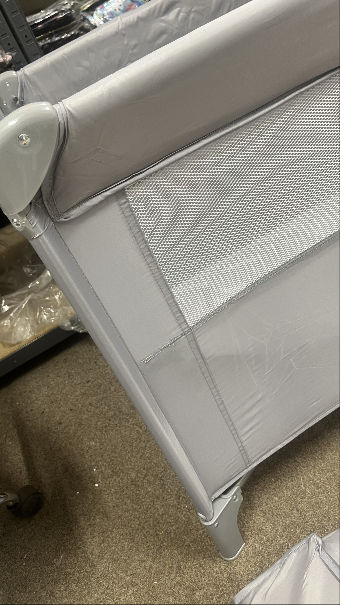 Tato cestovní postýlka je kompletní a plně použitelná, avšak spadá do kategorie 2. jakosti z důvodu drobných nedostatků.