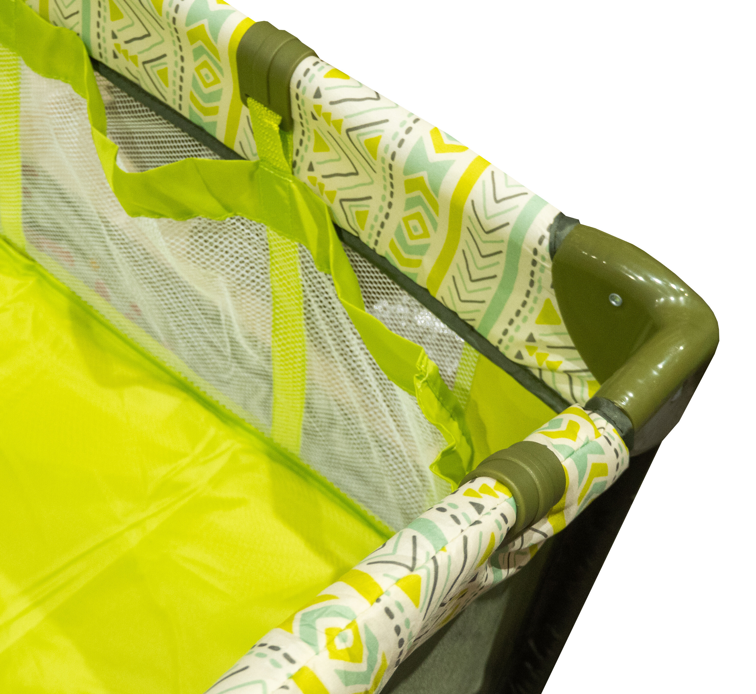 Díky síťovým bočnicím v postýlce cirkuluje čerstvý vzduch a s dítětem na sebe stále vidíte. Postýlka disponuje skládací matrací a cestovní taškou pro pohodlné přenášení.