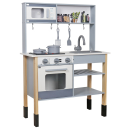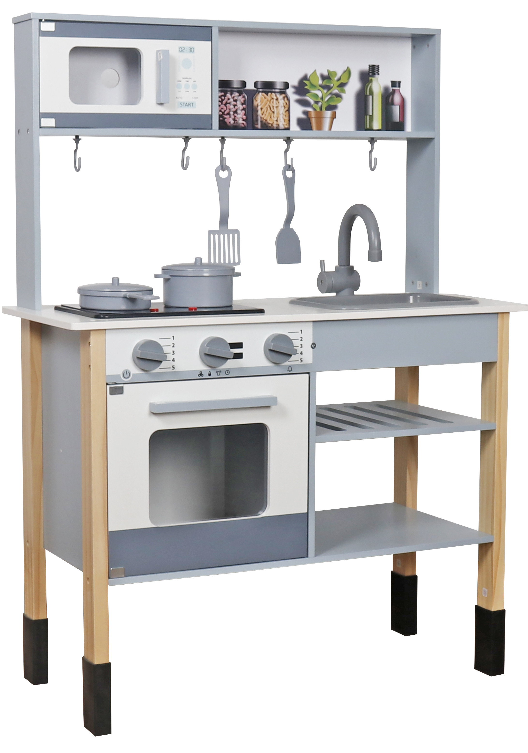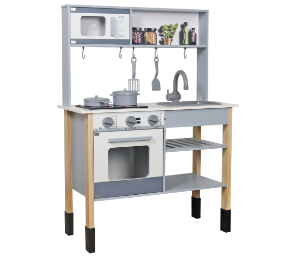 Kuchyňka dokonale napodobuje vaření ve skutečné kuchyni. Předtím, než svého prcka necháte pomáhat ve skutečné kuchyni, naučte jej základy s touto dřevěnou kuchyňkou.