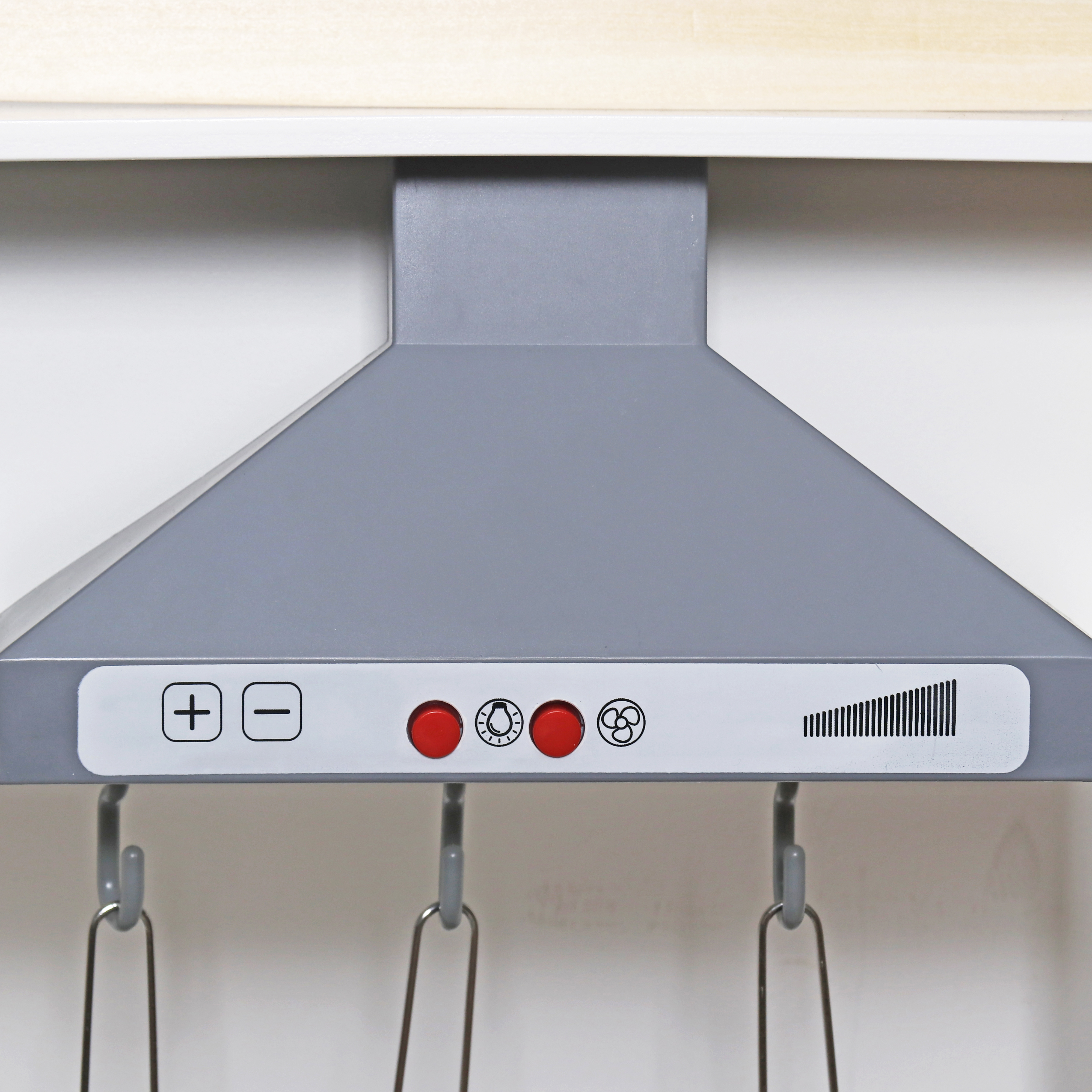 V horní části dětské kuchyně je tradiční digestoř kombinovaná s mikrovlnnou troubou. Digestoř má také světelné a zvukové efekty.
