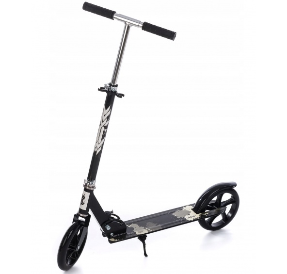 Koloběžka je opatřena několika bezpečnostními a ochrannými prvky jako jsou např. Široký a dlouhý nášlap je pokrytý protiskluzovým gripem zajišťujícím správnou přilnavost boty, protiskluzové pěnové rukojeti řídítek.