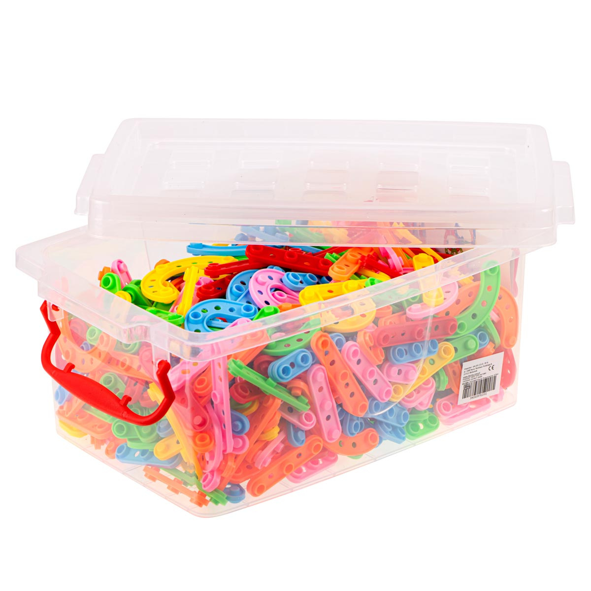 Skvělé pro stimulaci představivosti dítěte. Sada obsahuje 576 bloků různých barev v různých velikostech, délce: 2,9 - 7,5 cm, šířce 1,3 cm.