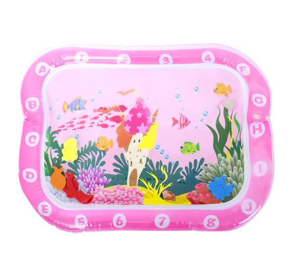 Stačí nafoukat okraj podložky a střed naplnit vodou popřípadě je možnost ji nafouknout. Díky vodě uvnitř se začnou pohybovat prvky ve tvaru mořských živočichů, které dítě povzbuzují ke hře.