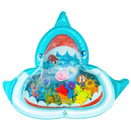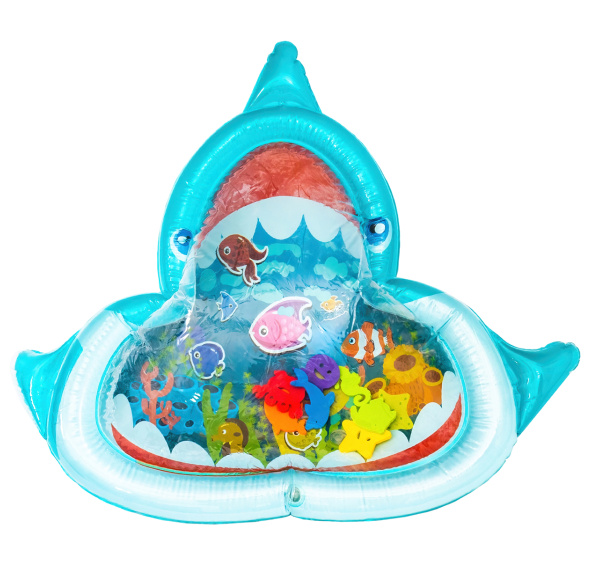Stačí nafoukat okraj podložky a střed naplnit vodou popřípadě je možnost ji nafouknout. Díky vodě uvnitř se začnou pohybovat prvky ve tvaru mořských živočichů, které dítě povzbuzují ke hře.
