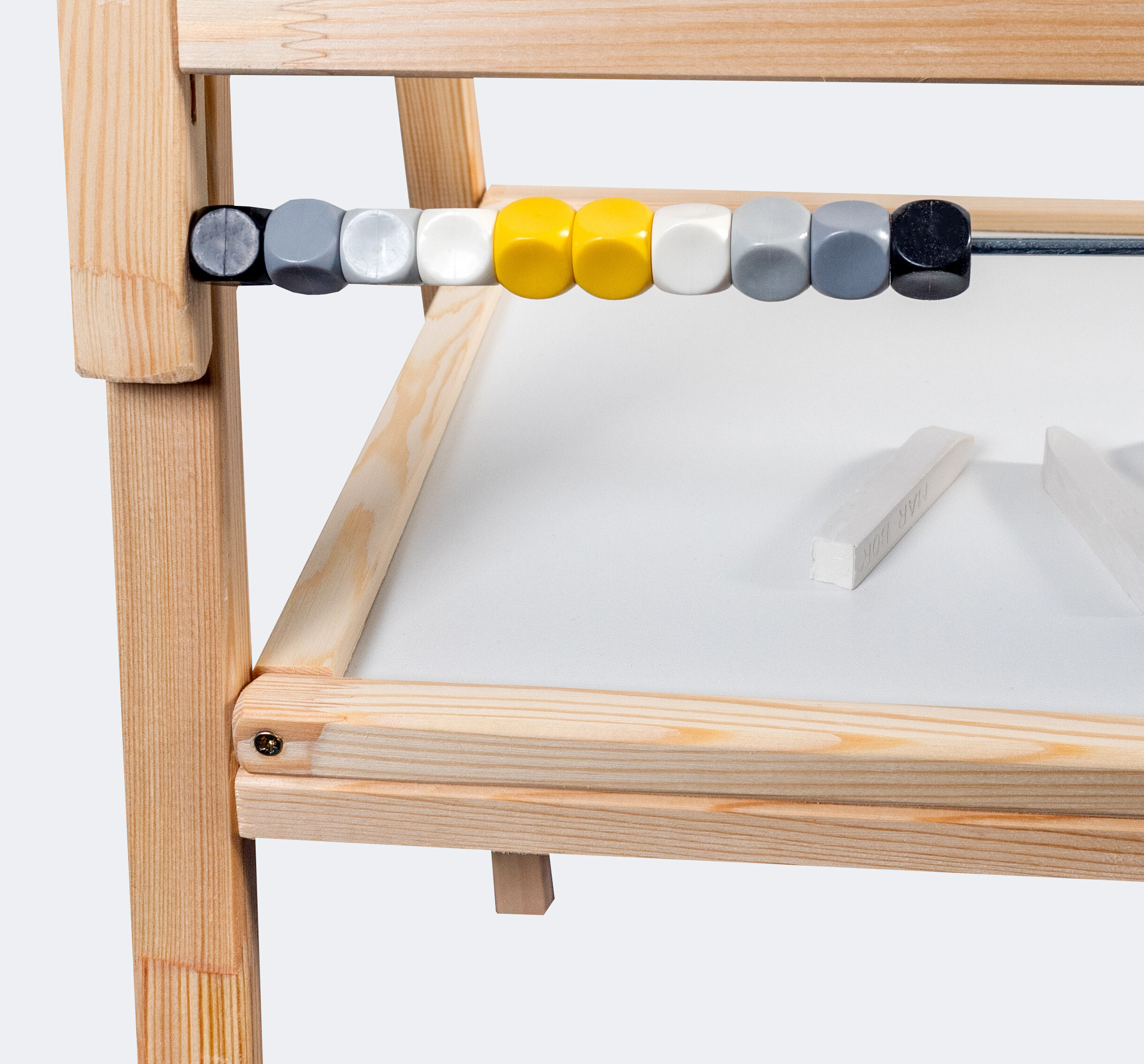 - Sada obsahuje - otočnou tabuli, 5 barevných kříd, 1 fix, 1 roli papíru, počítadlo, 1 houbu, 1 hadřík