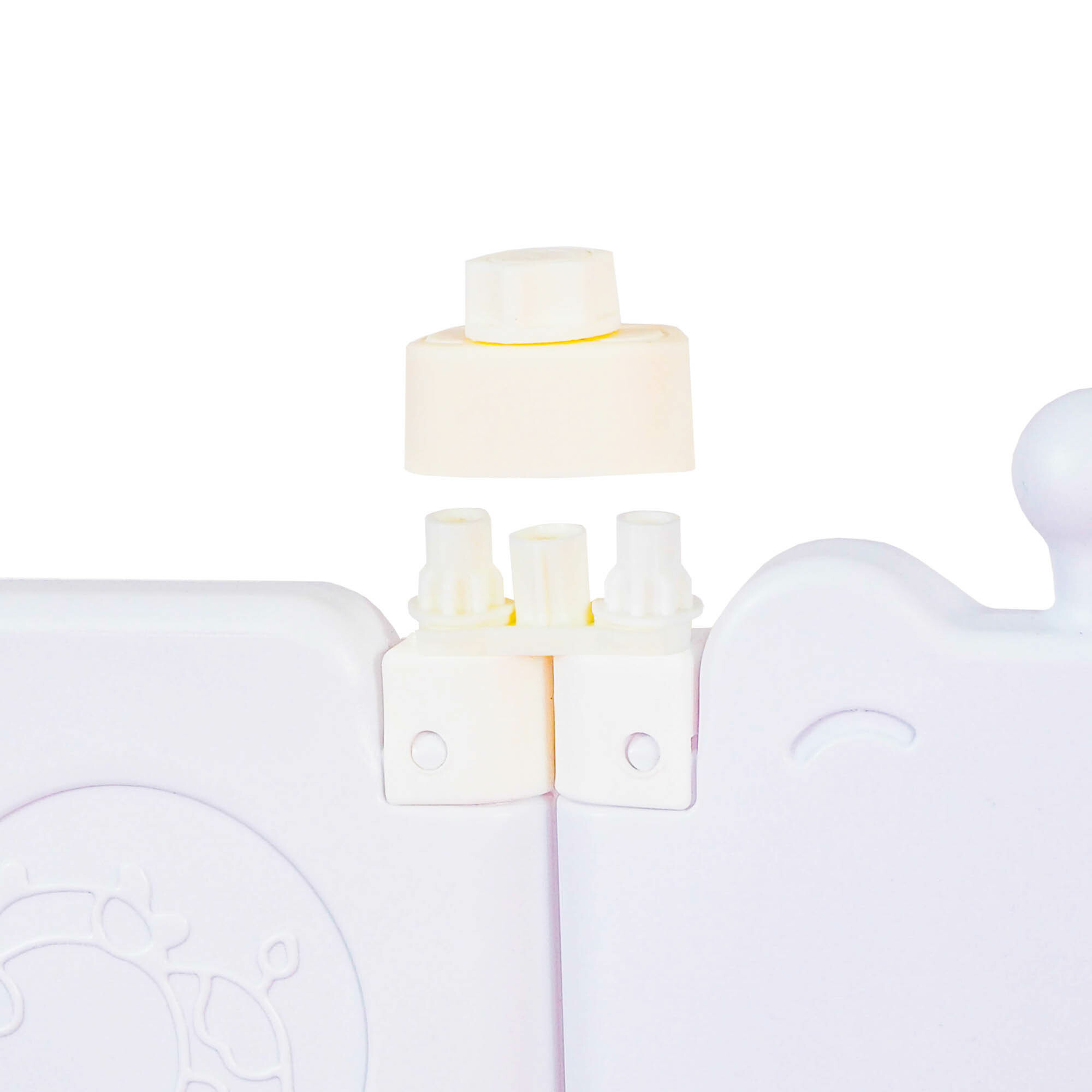 Ohrádka je navržena tak, aby její sestavení bylo snadné a intuitivní, bez potřeby nářadí. Plastový materiál je také snadno umývatelný, což zajišťuje hygienu a dlouhodobou udržitelnost.