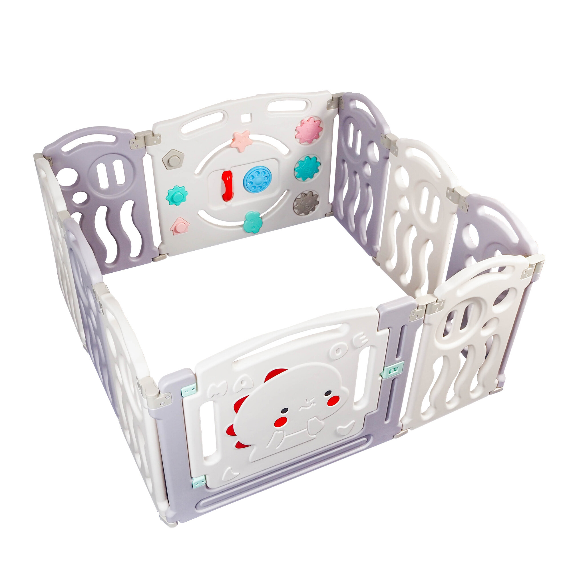 Ohrádka je vyrobena z vysoce kvalitního, netoxického plastu, který je bezpečný pro děti a odolný vůči vnějším vlivům.