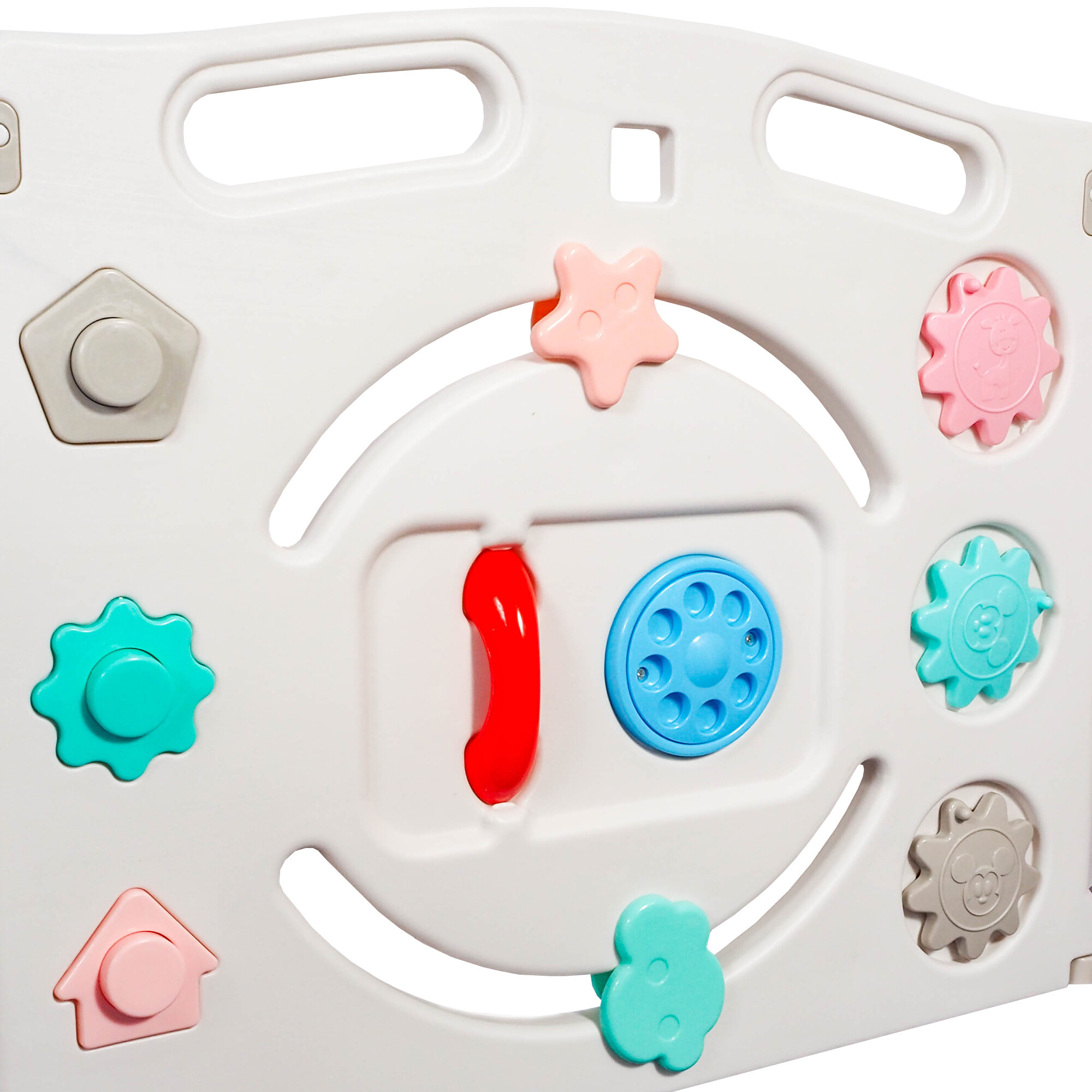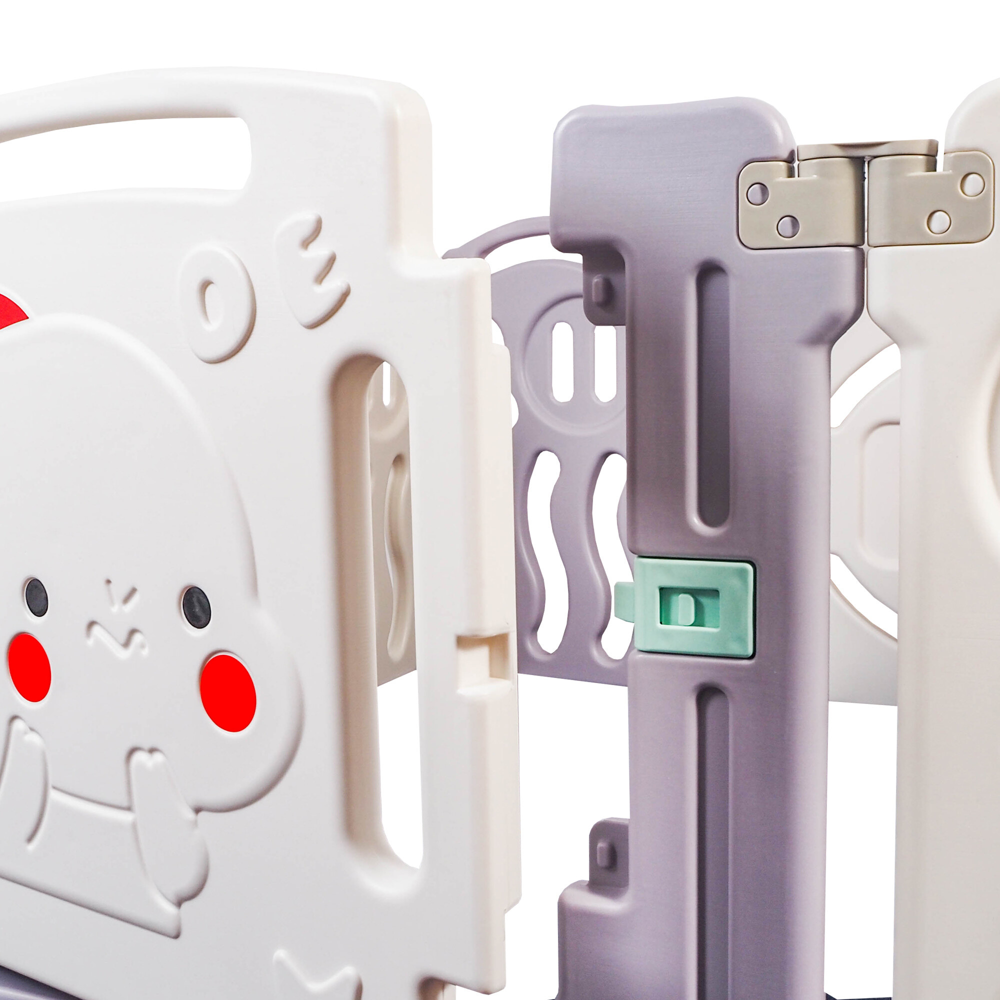 Ohrádka je vyrobena z vysoce kvalitního, netoxického plastu, který je bezpečný pro děti a odolný vůči vnějším vlivům.
