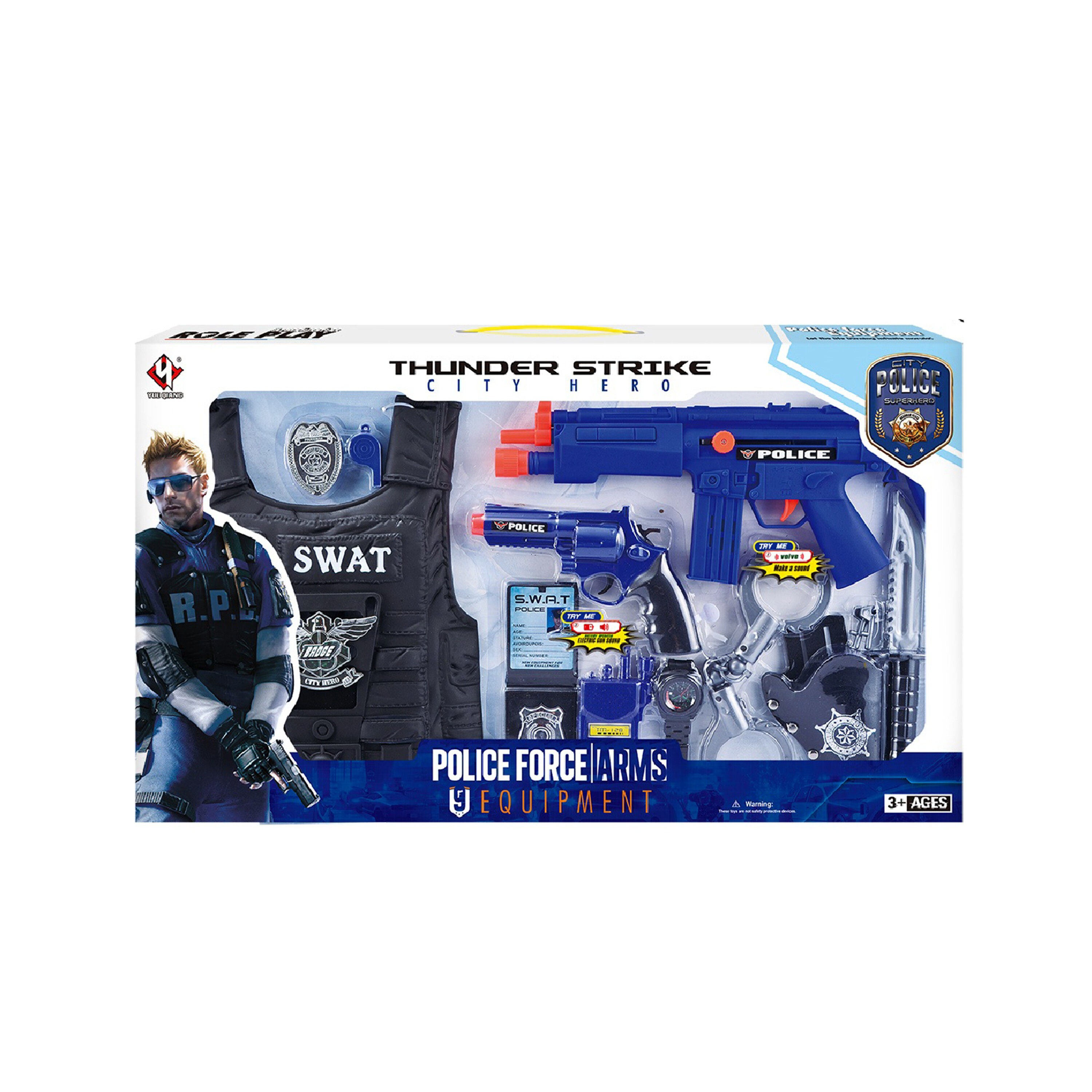Součástí balení je spousta realistických doplňků, s jejichž pomocí dítě chytí skutečného zloděje a zabrání mnoha různým přestupkům.