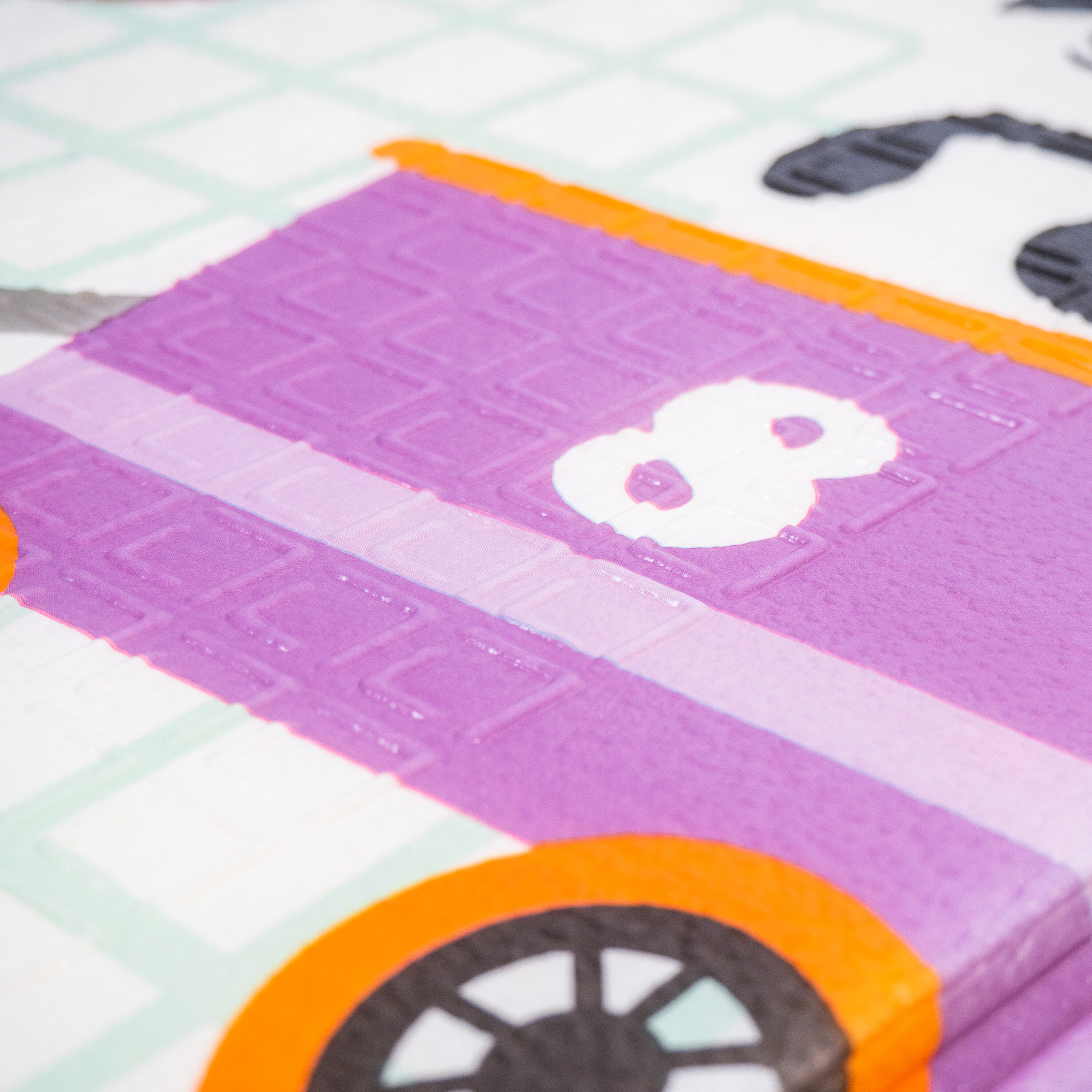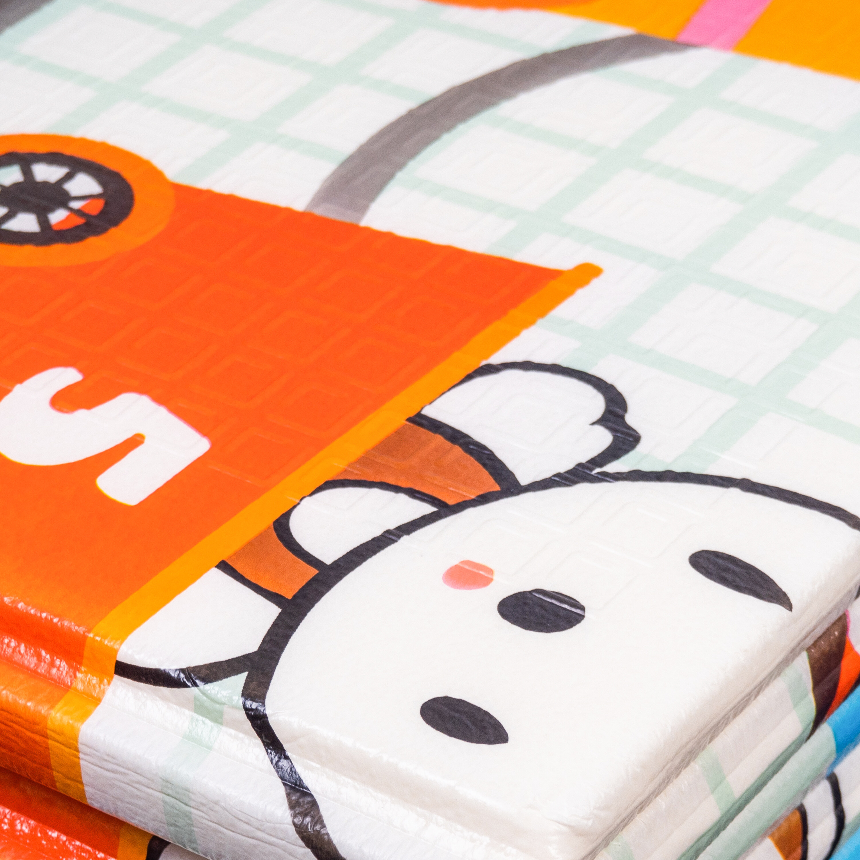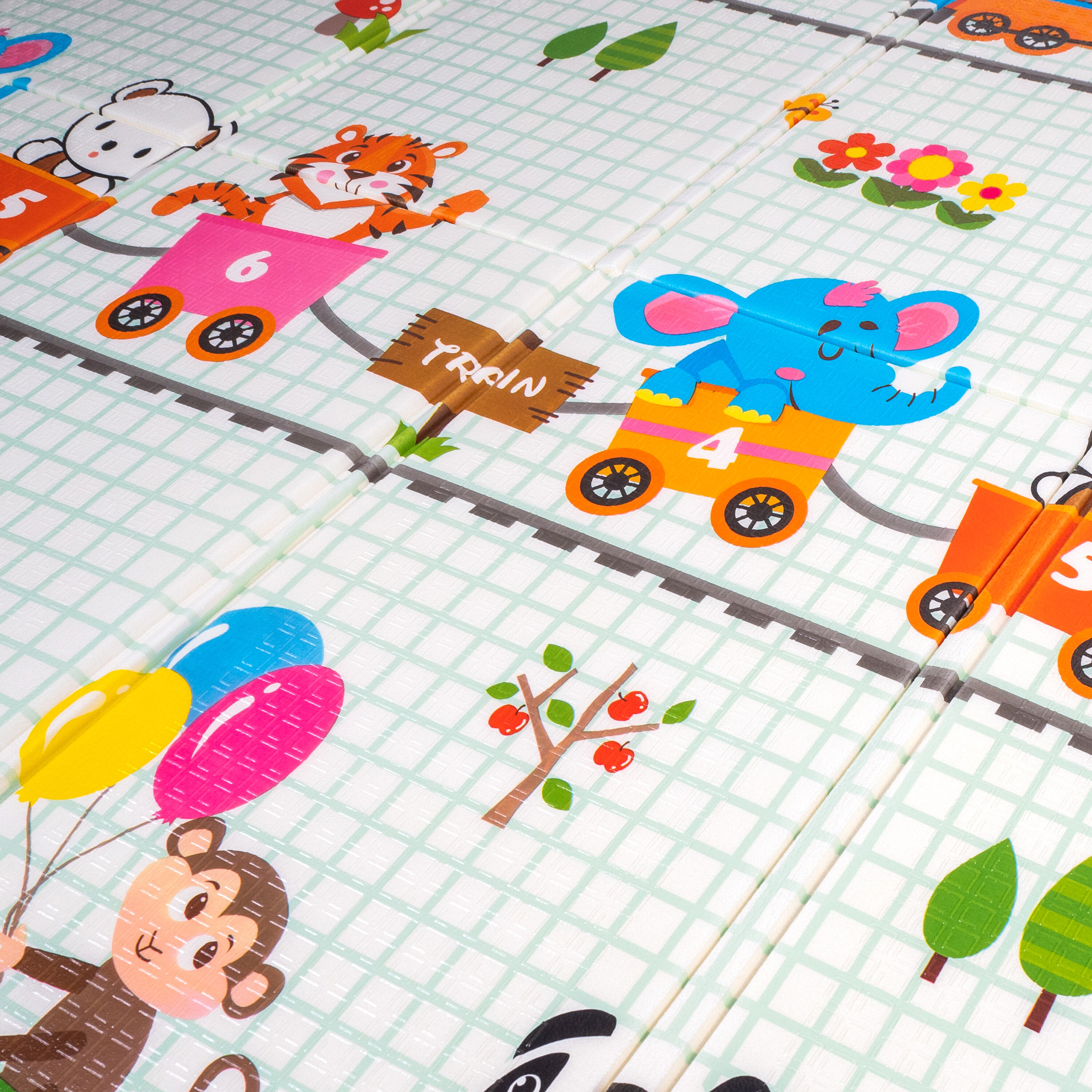 Hrací podložka má oboustranný potisk s veselými motivy a protiskluzový povrch zajistí bezpečnost každé hry.