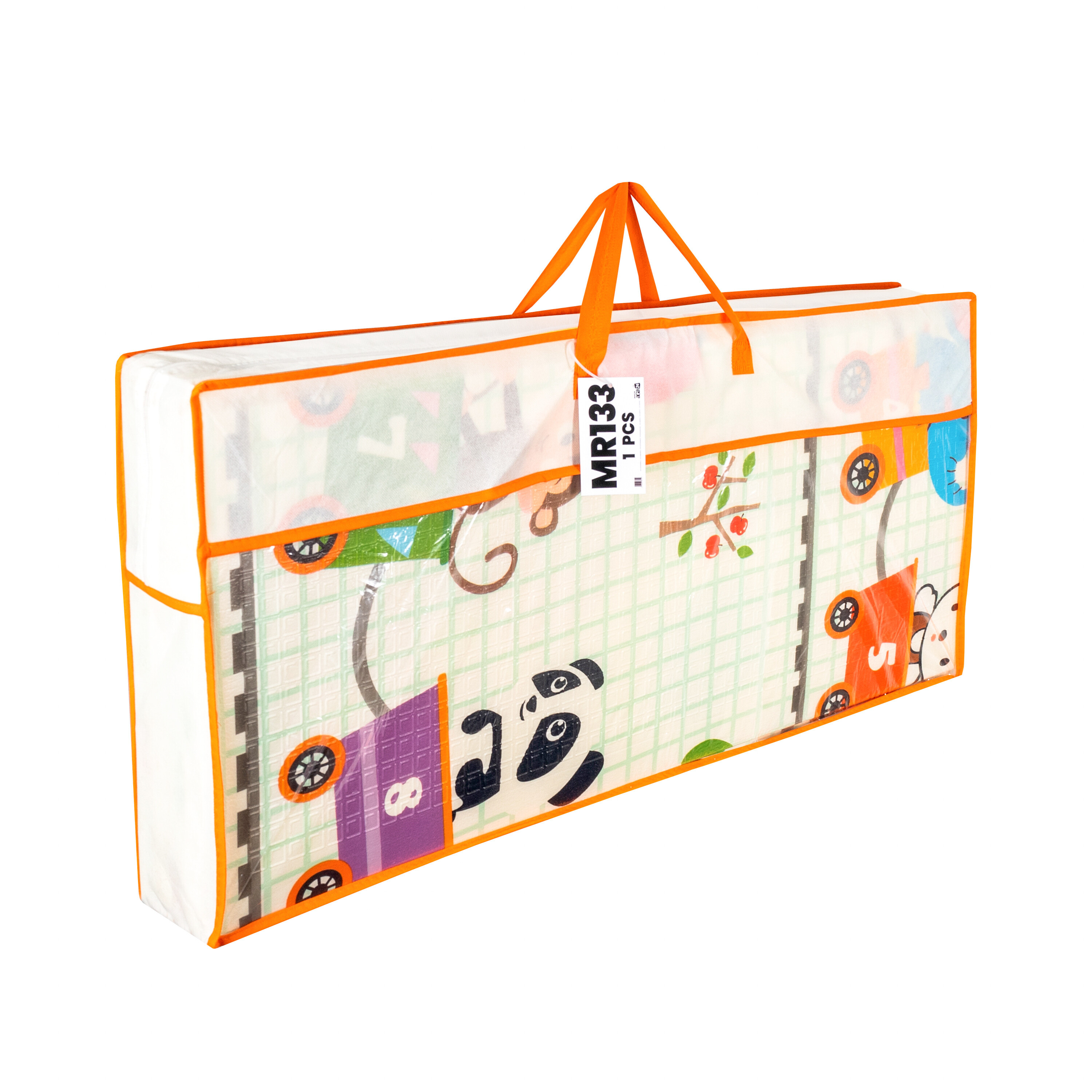 Hrací podložka se dá složit do praktické přenosné tašky, která je součástí. Podložka tak nezabere nikde zbytečně místo, dobře se skladuje a snadno přenáší.