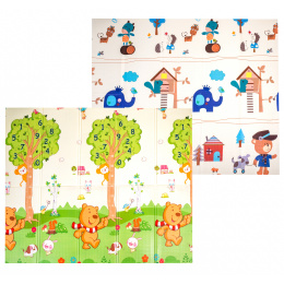 Hrací podložka má oboustranný potisk s veselými motivy a protiskluzový povrch zajistí bezpečnost každé hry.