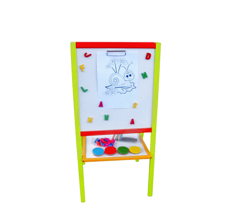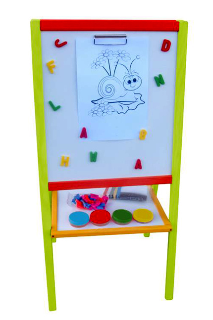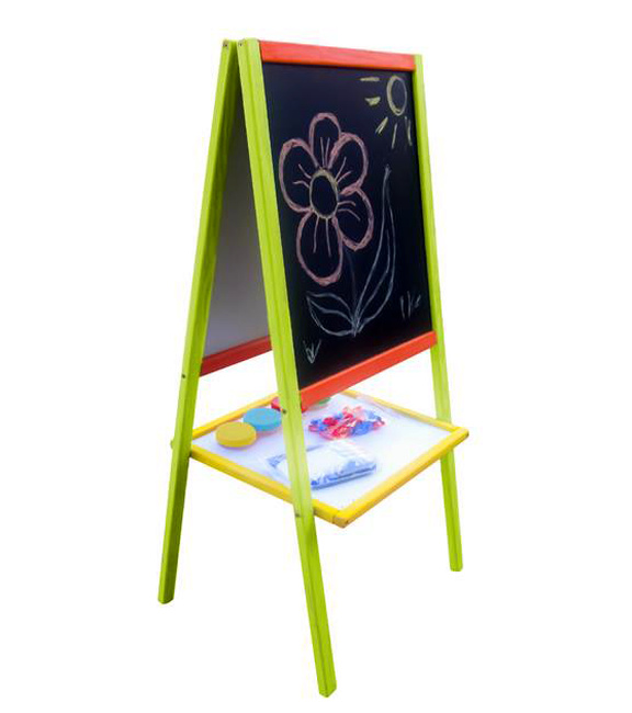 Oboustranná dětská magnetická tabule s odkládací poličkou, v barevném rámu, od firmy Aga4Kids.