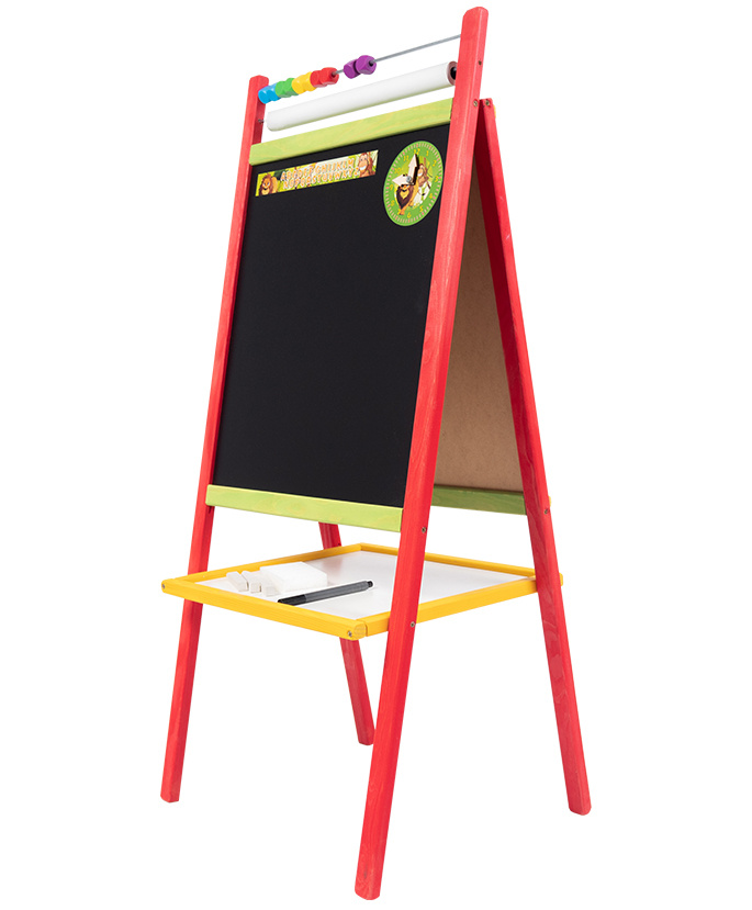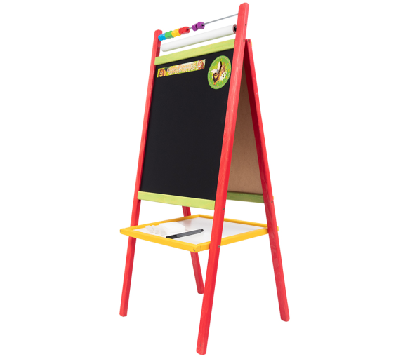 Oboustranná dětská magnetická tabule s odkládací poličkou, počítadlem a 20 metrovou rolí papíru, od firmy Aga4Kids.