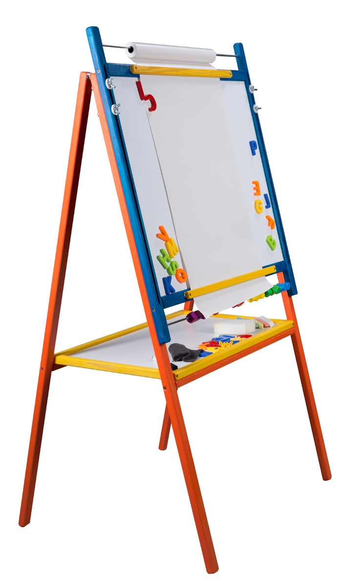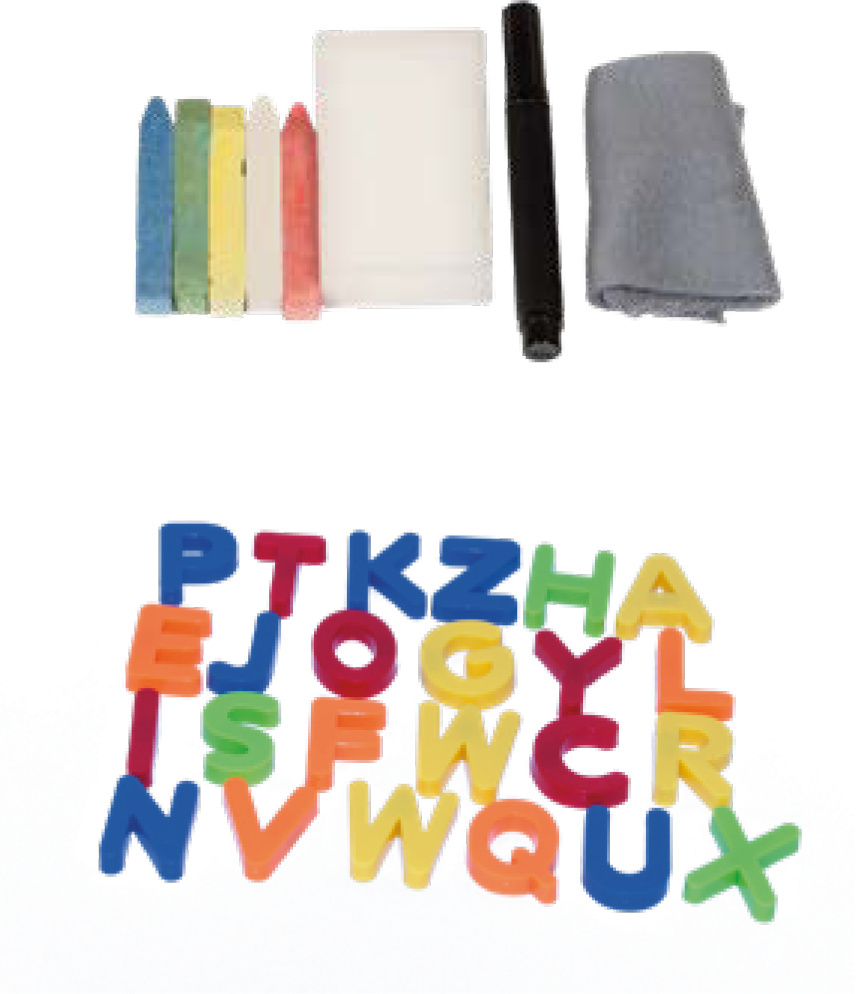 - Sada obsahuje - otočnou tabuli, 5 barevných kříd, 1 fix, 1 roli papíru, počítadlo, 1 houbu, 1 hadřík