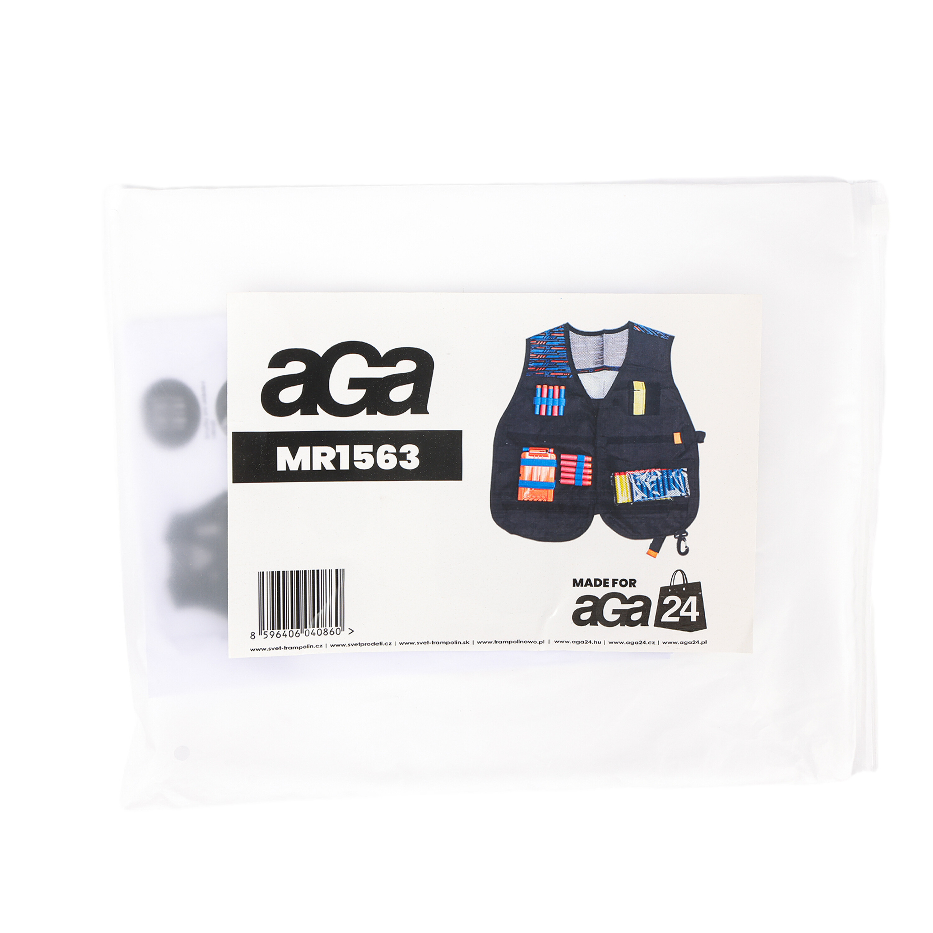 Ve vestě najdete místo pro uložení nábojů, příslušenství a držák na zásobník. V sadě naleznete i ochranné brýle, které mají ochrannou funkci.