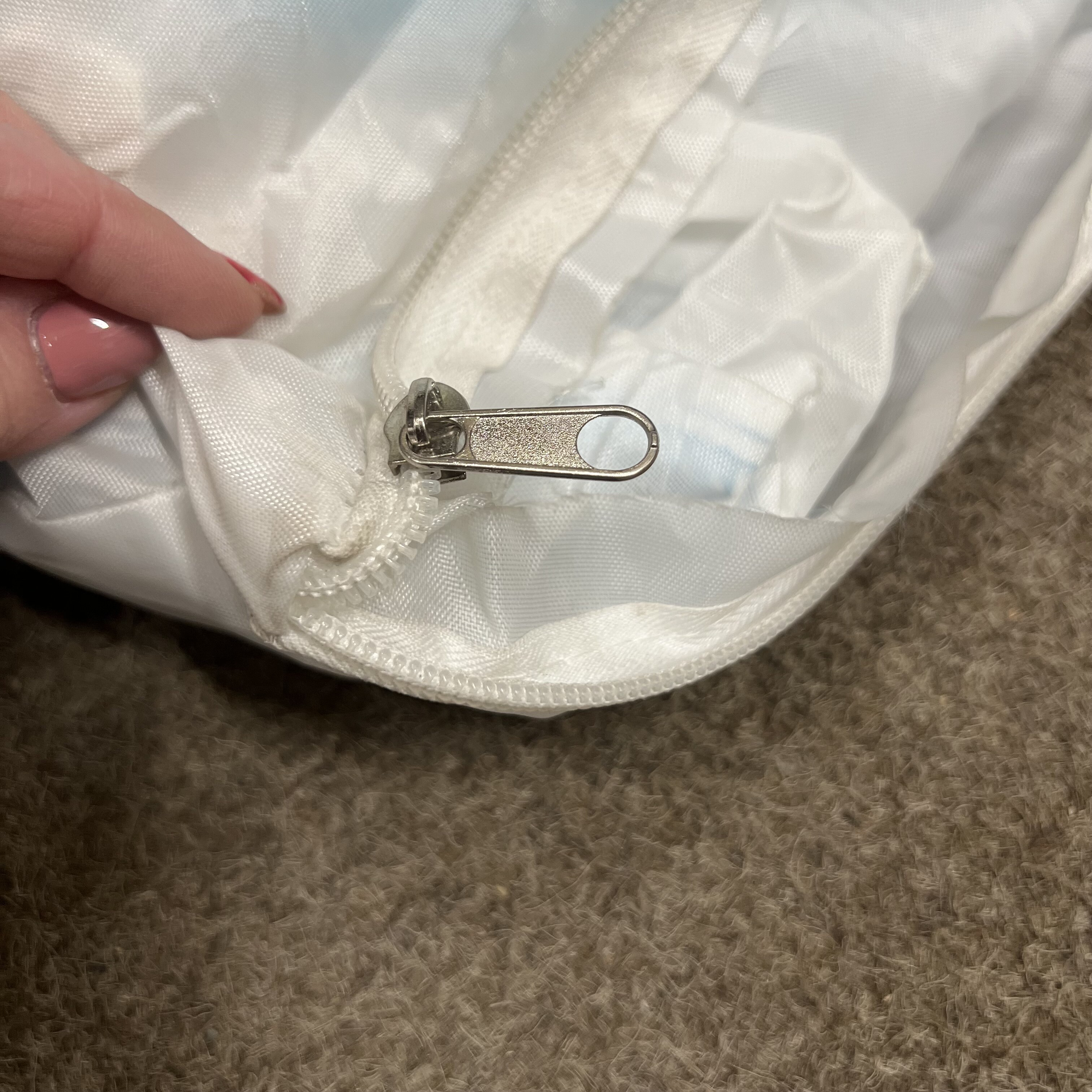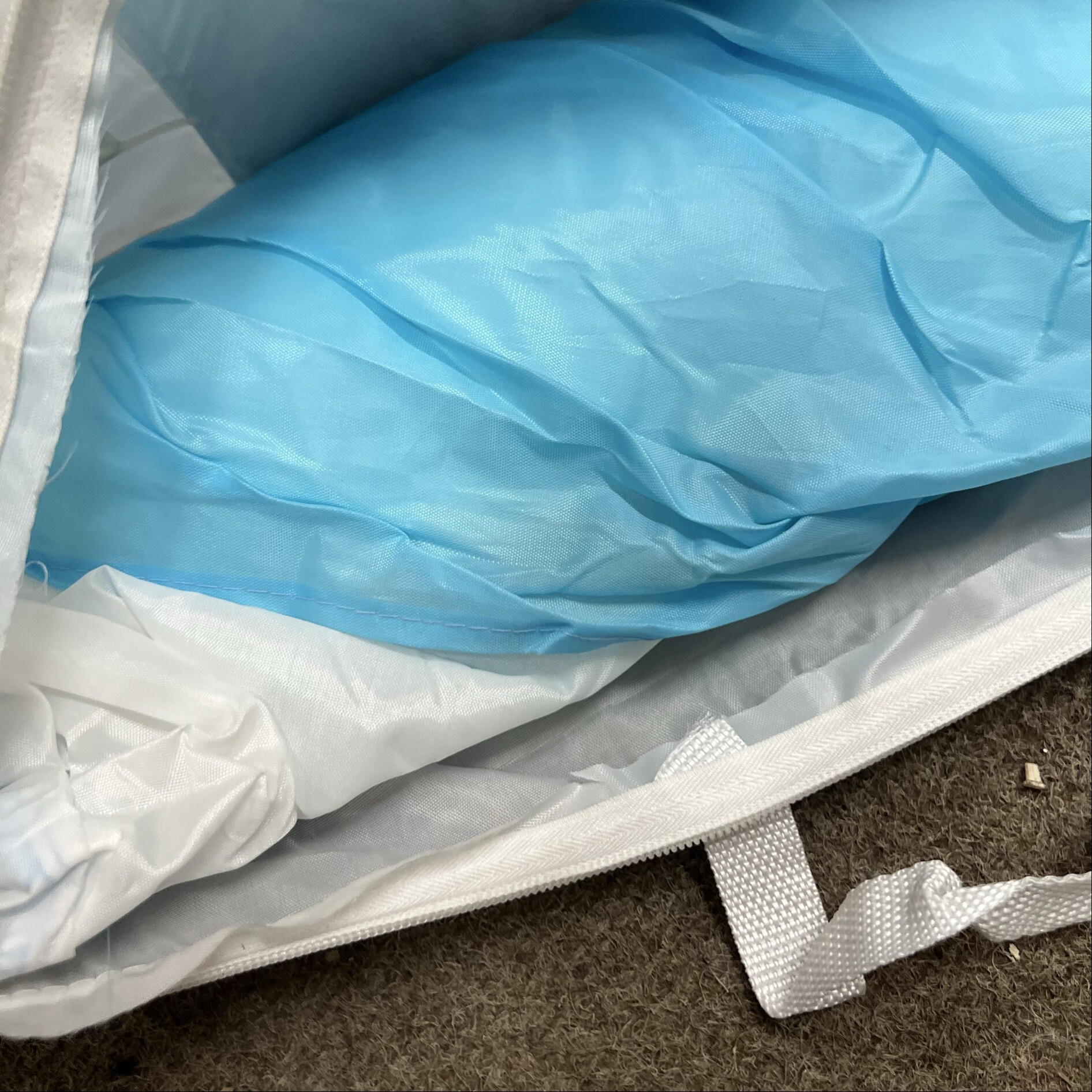 Obal na dětský stan má nefunkční zip. Je potřeba si ho opravit.