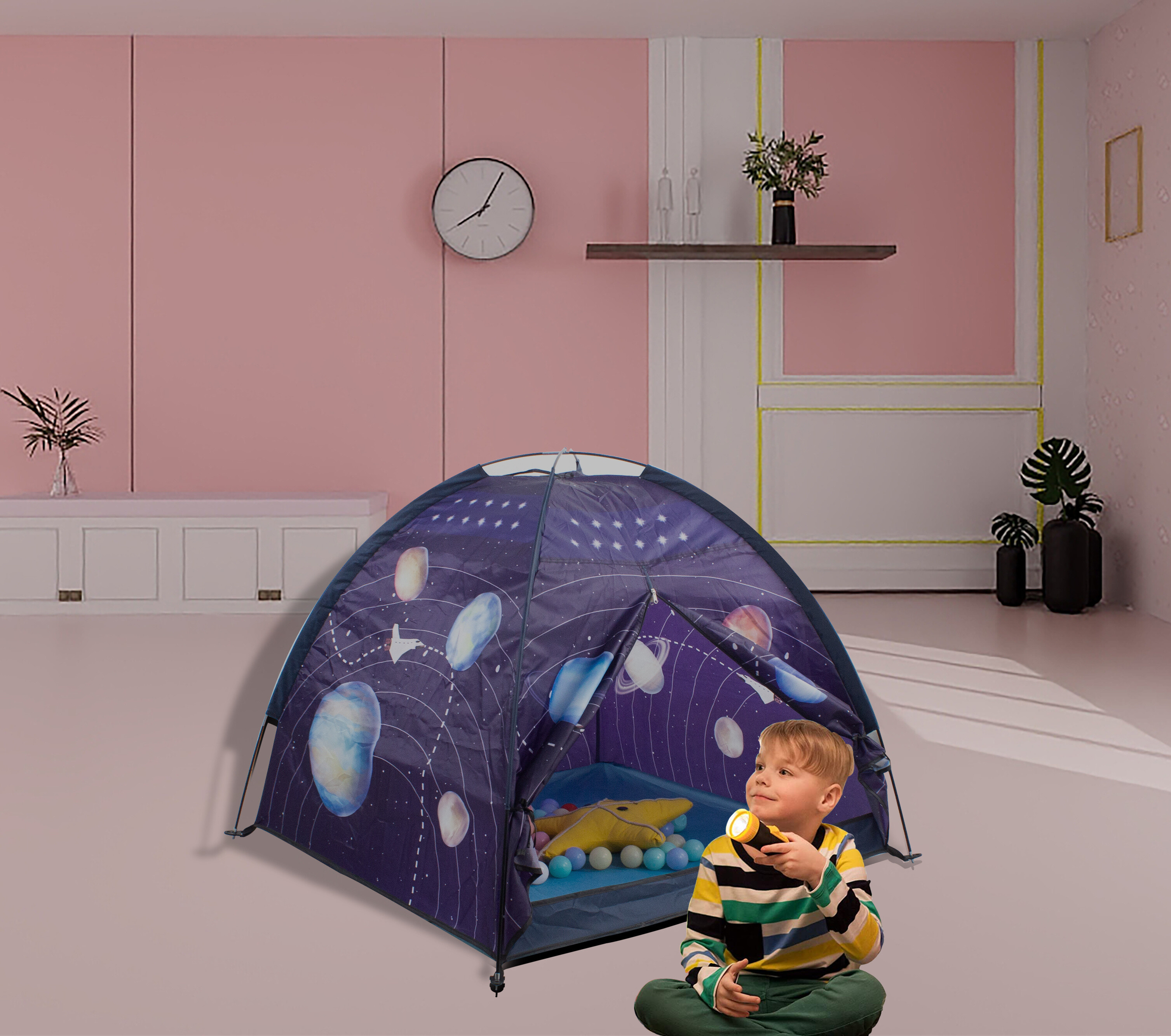 Dětský stan s motivem vesmíru se stane oblíbeným útočištěm a místem her.
