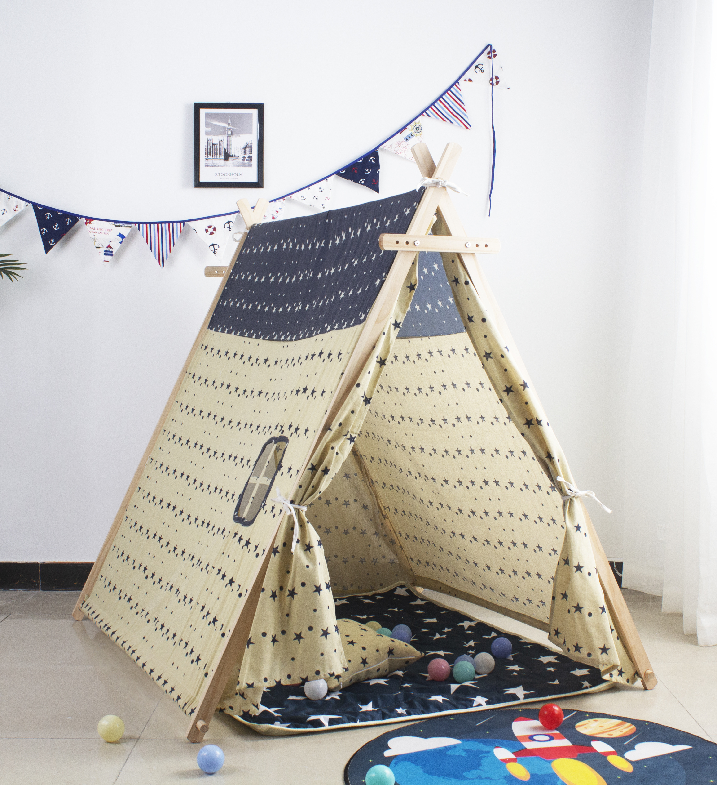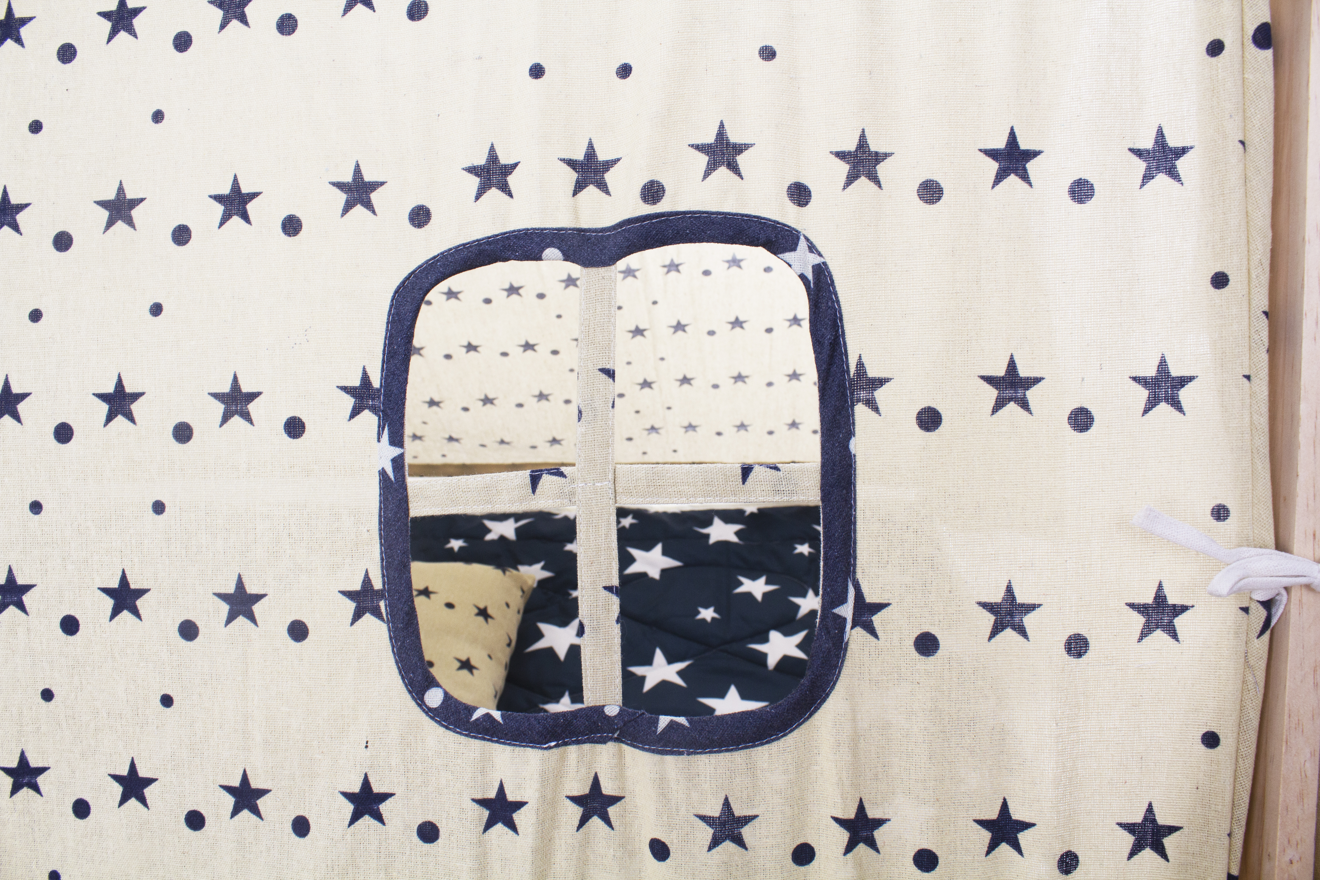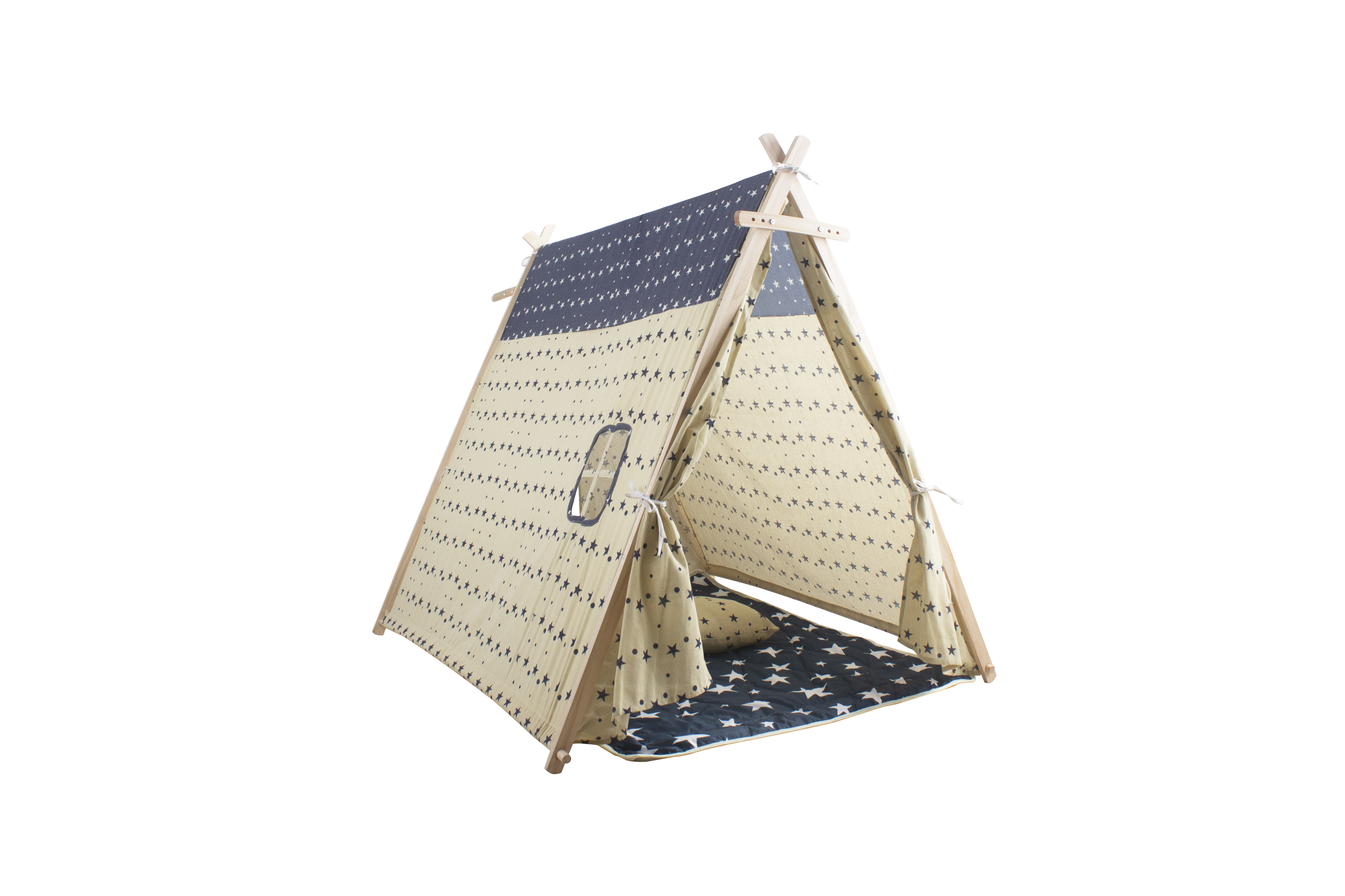 Tento stan poskytne dětem útulný koutek pro jejich hraní. Rám stanu se skládá ze čtyř dřevěných tyčí.