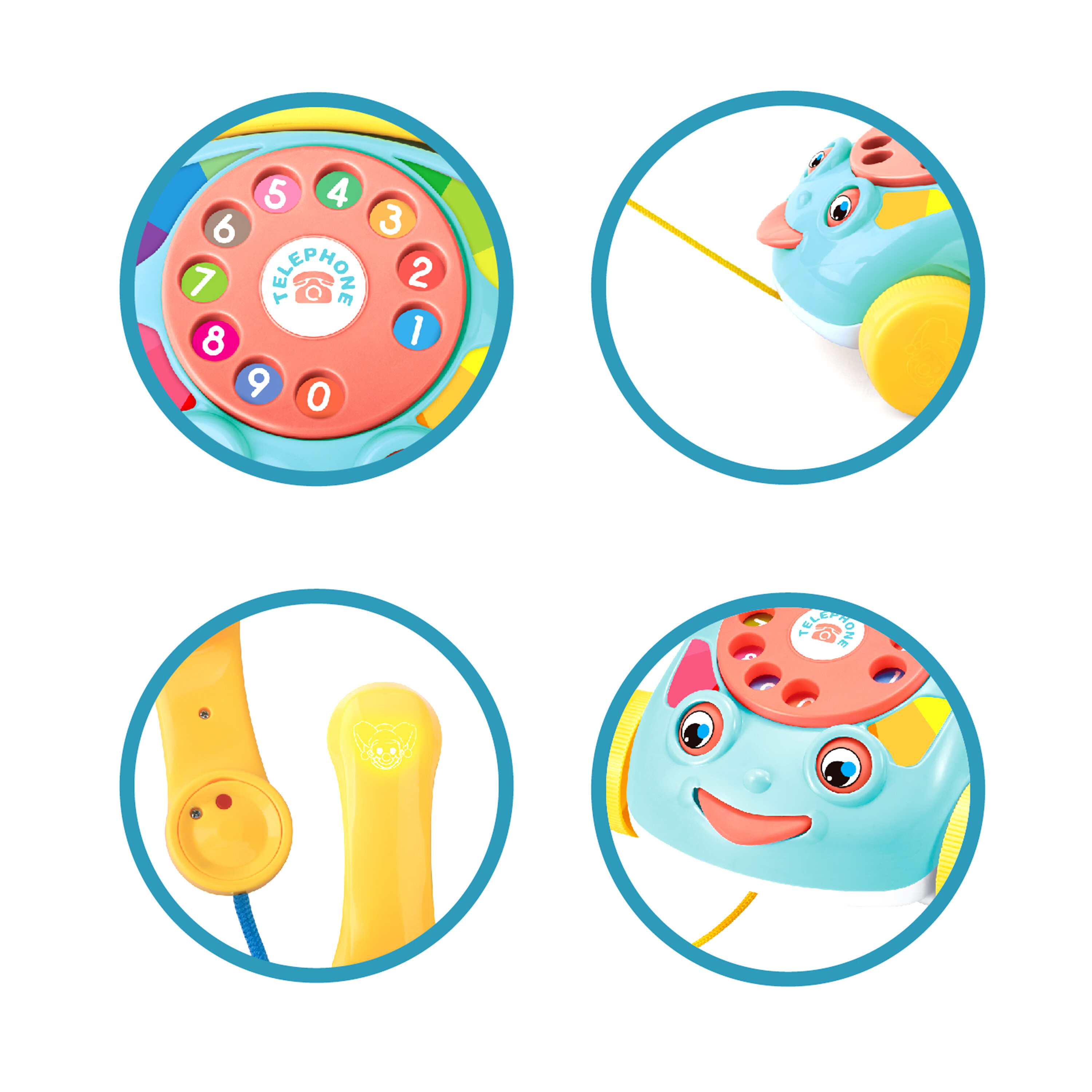 Na telefonu se nachází ciferník s čísly, které při pohybu vydávají zvuk zvonku nebo zabzučí. Při hraní nebo tažení se pohybují oči a jazyk telefonu.
