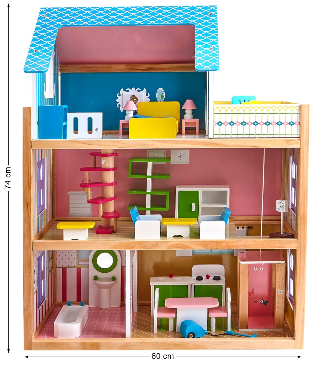 - Výška jednotlivých poschodí domečku: 24, 24, 31 cm