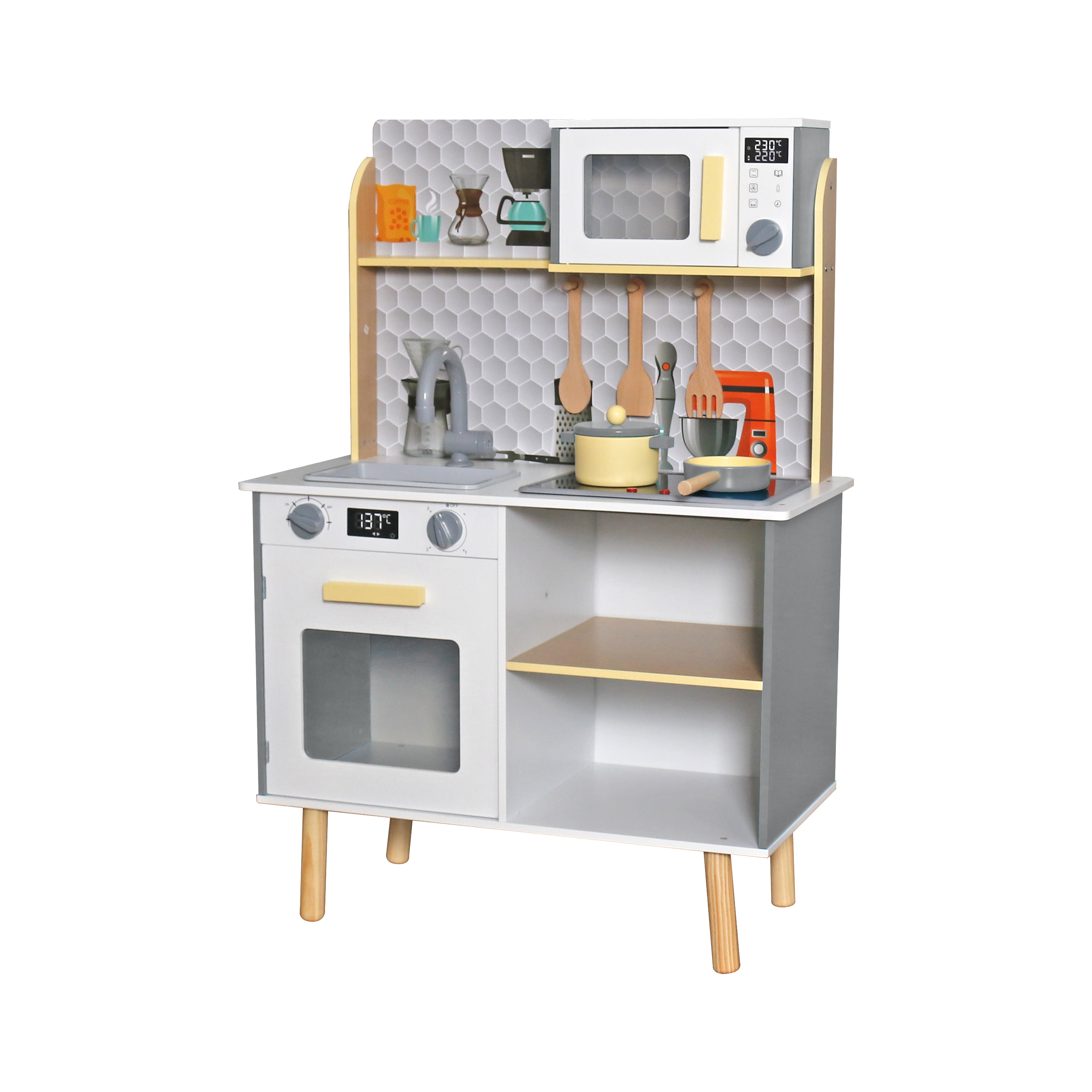 Kuchyňka je vyrobená v moderním designu, který má co nejvěrněji napodobit skutečnou dnešní domácnost.