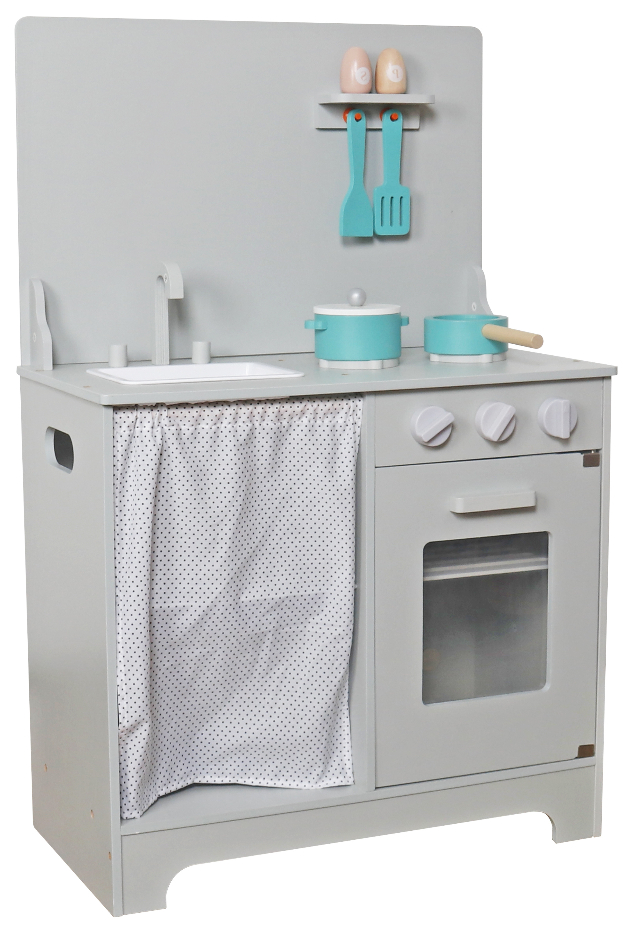 Aga4Kids Dřevěná kuchyňka Mini Chef  s troubou na pečení tyrkysovým nádobím Šedá
