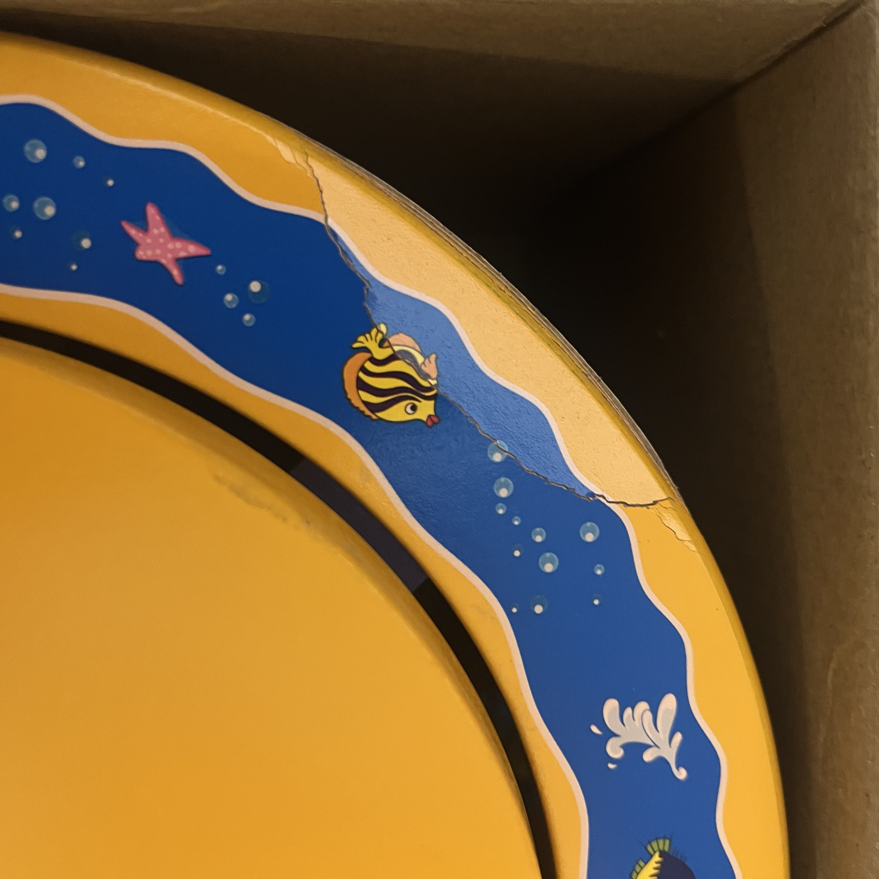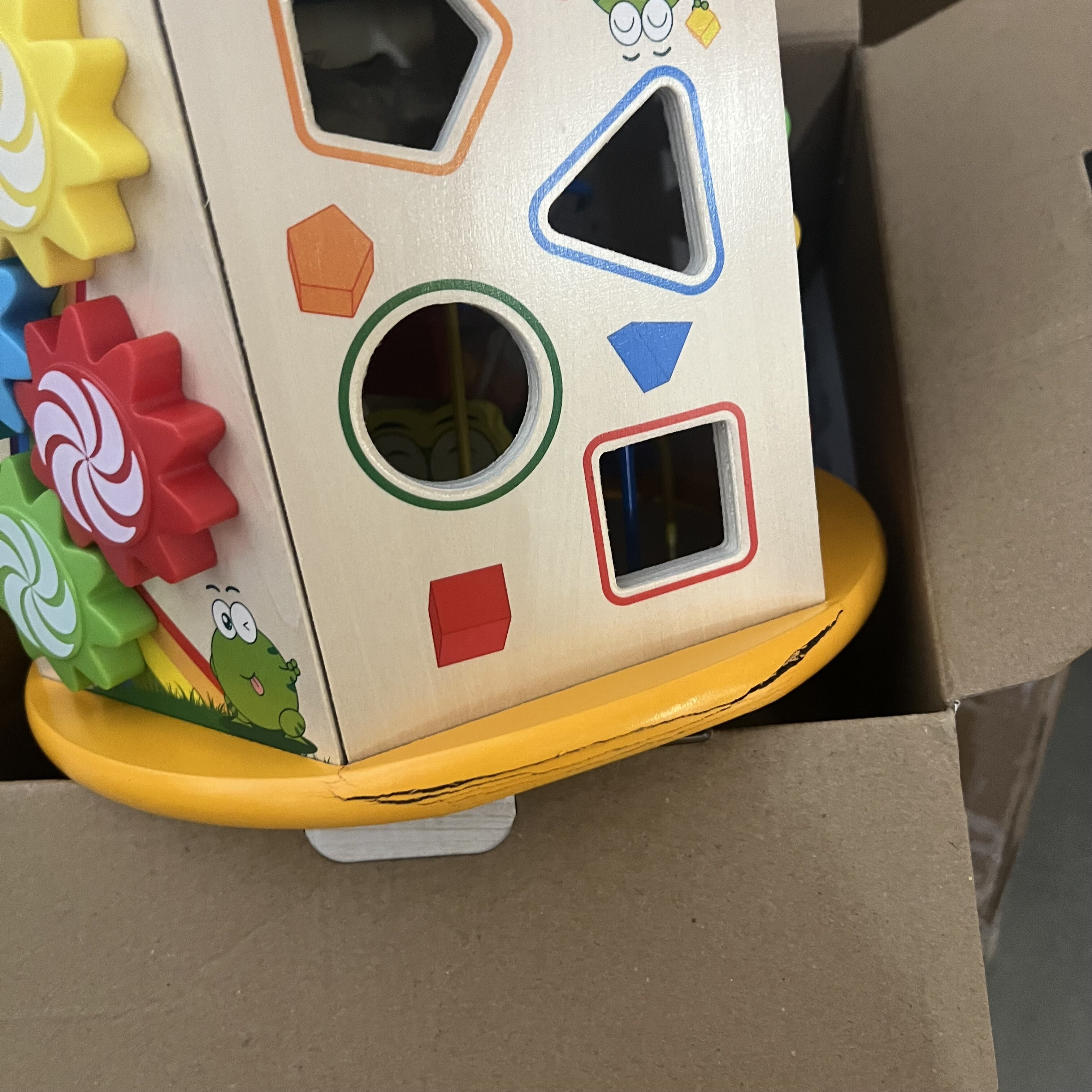 Hračka je rozbitá na jednom místě.