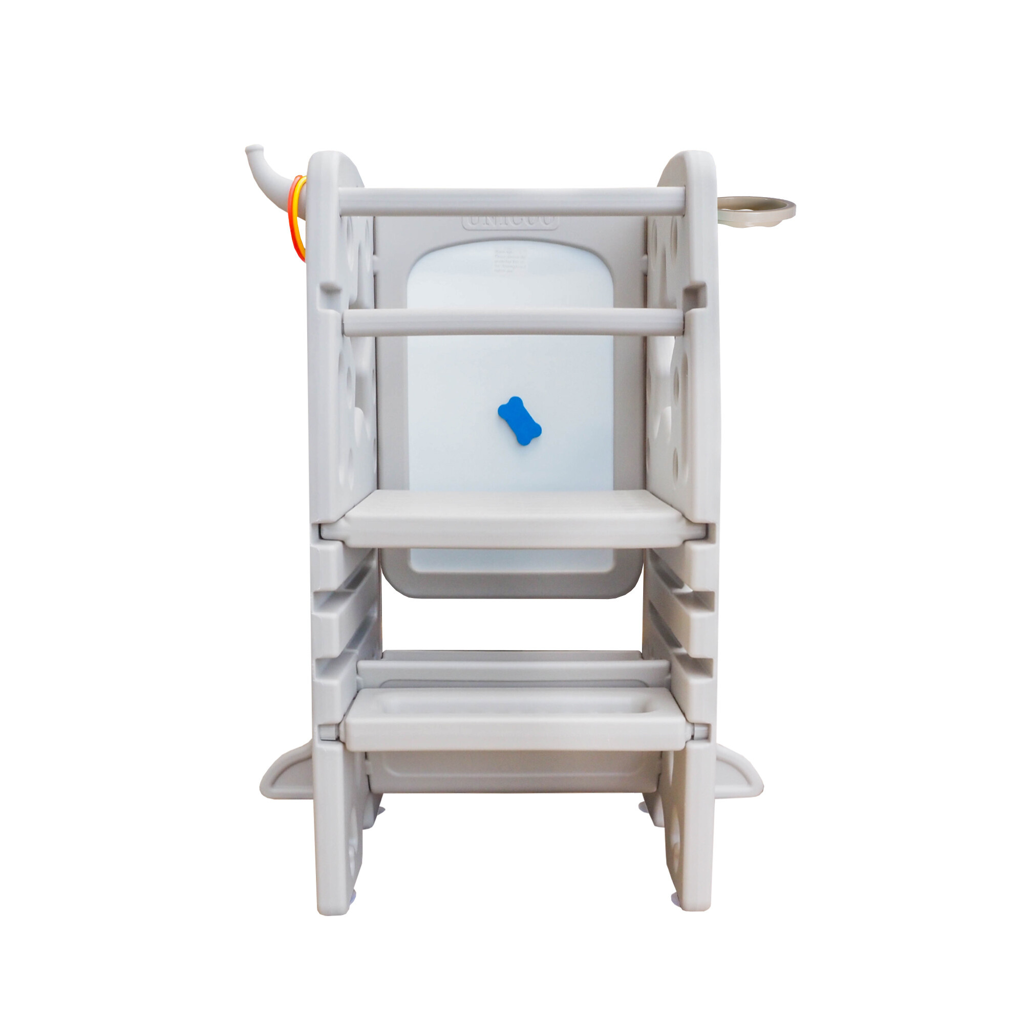 Dítě může vylézt na výukovou věž samostatně, schod od podlahy je ve výšce 12 cm, což pomáhá dítěti dostat se na věž bezpečně. Učící věž nevyužijete pouze v kuchyni, ale i při dalších činnostech jako je čištění zubů, mytí rukou, pomáhání tatínkovi v dílně nebo při podávání hraček, které jsou v horních policích.