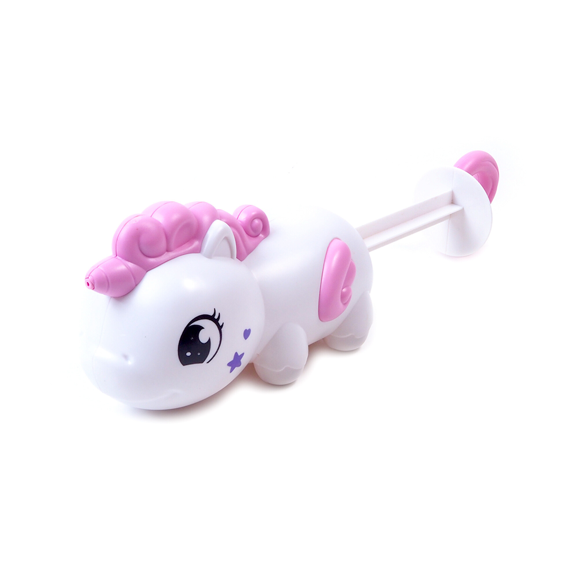 Fungování stříkacího jednorožce je velmi jednoduché. Stačí ho ponořit do vody, natáhnout pumpu a stříkat vodu. Tento mechanismus je navržen tak, aby byl snadno použitelný pro děti všech věkových kategorií.