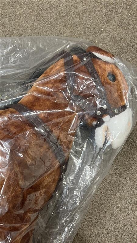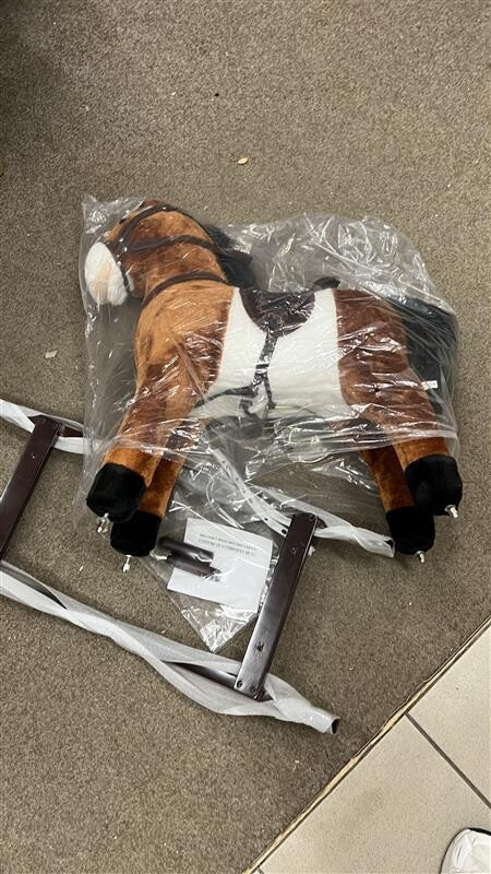 - Hračka má sedlo s třmeny, uzdu a dřevěné rukojeti