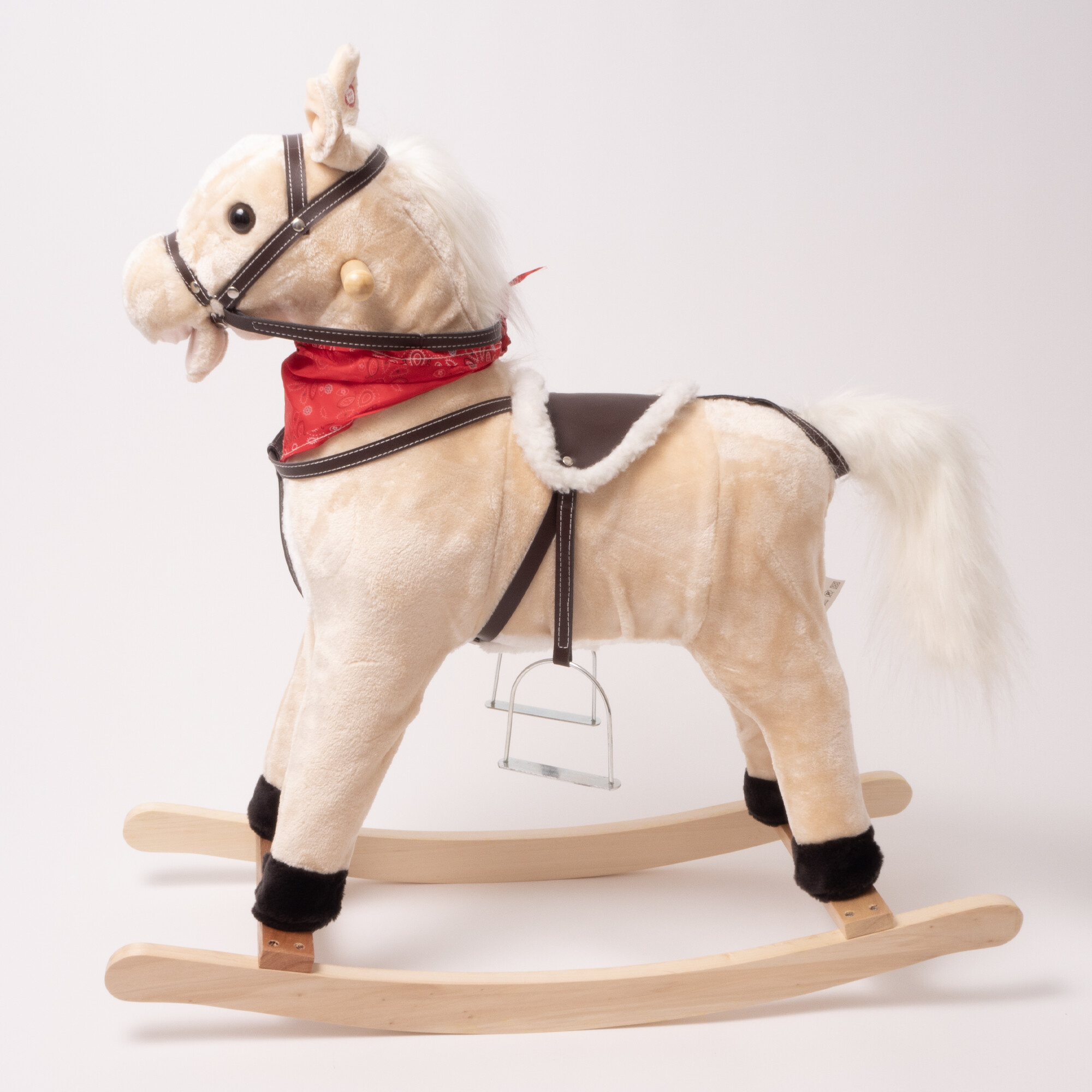 Houpací koník je vyroben z kvalitního plyše a dřeva, což zajišťuje jeho dlouhou životnost a bezpečnost pro vaše děti. Jeho realistický vzhled a jemný plyšový povrch zaručují, že se stane oblíbeným společníkem každého malého jezdce. S rozměry 74 cm na výšku, 76 cm na délku a 28 cm na šířku je koník dostatečně velký, aby poskytl pohodlnou jízdu, ale zároveň kompaktní, aby se vešel do každého dětského pokoje.