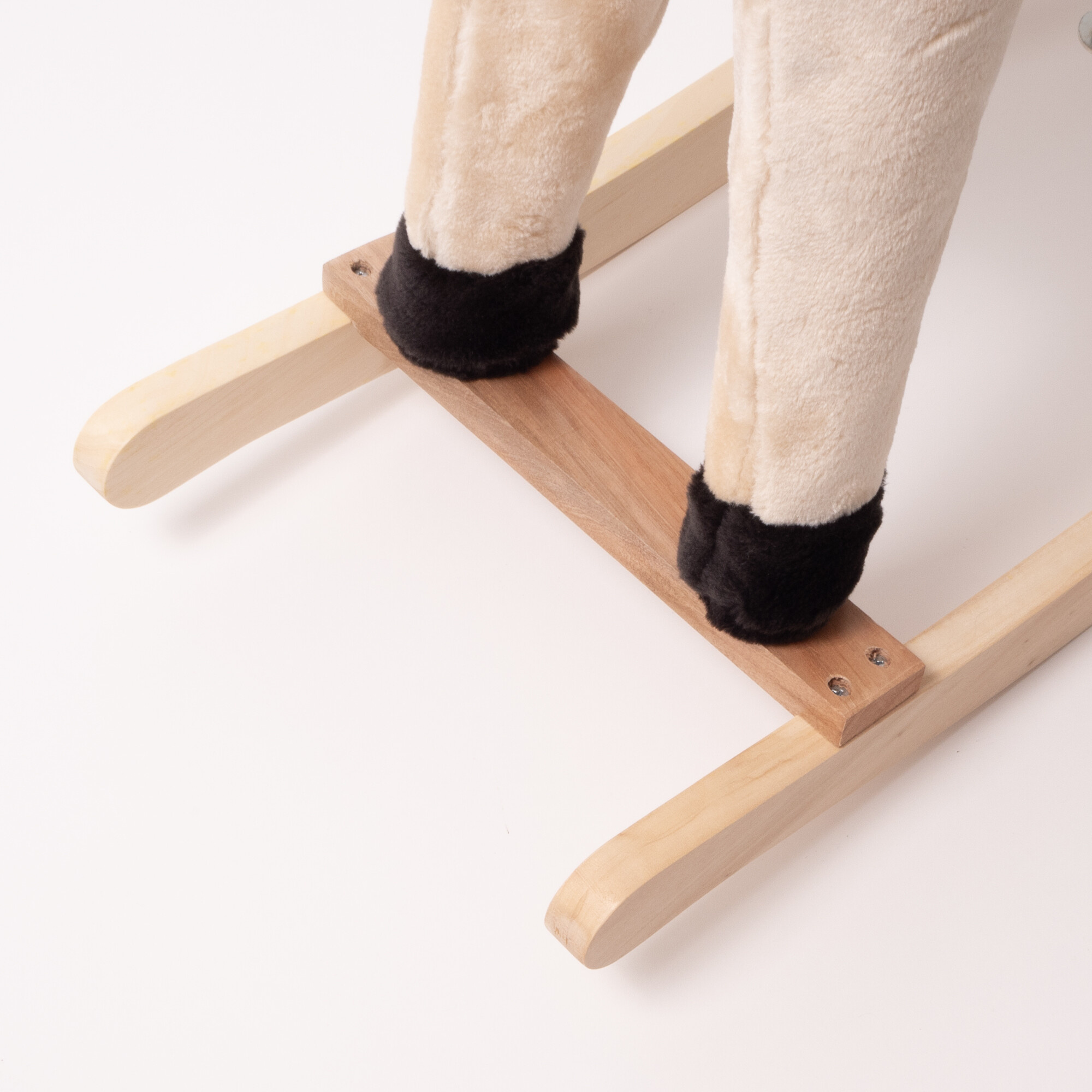 Dětský houpací koník je vybaven dřevěnými rukojeťmi po stranách hlavy, které poskytují stabilní úchop a zajišťují bezpečnou jízdu. Výška sedla je 46 cm, což je ideální pro děti od 3 let. Maximální nosnost koníka je 50 kg, což zajišťuje, že je vhodný pro většinu malých jezdců.