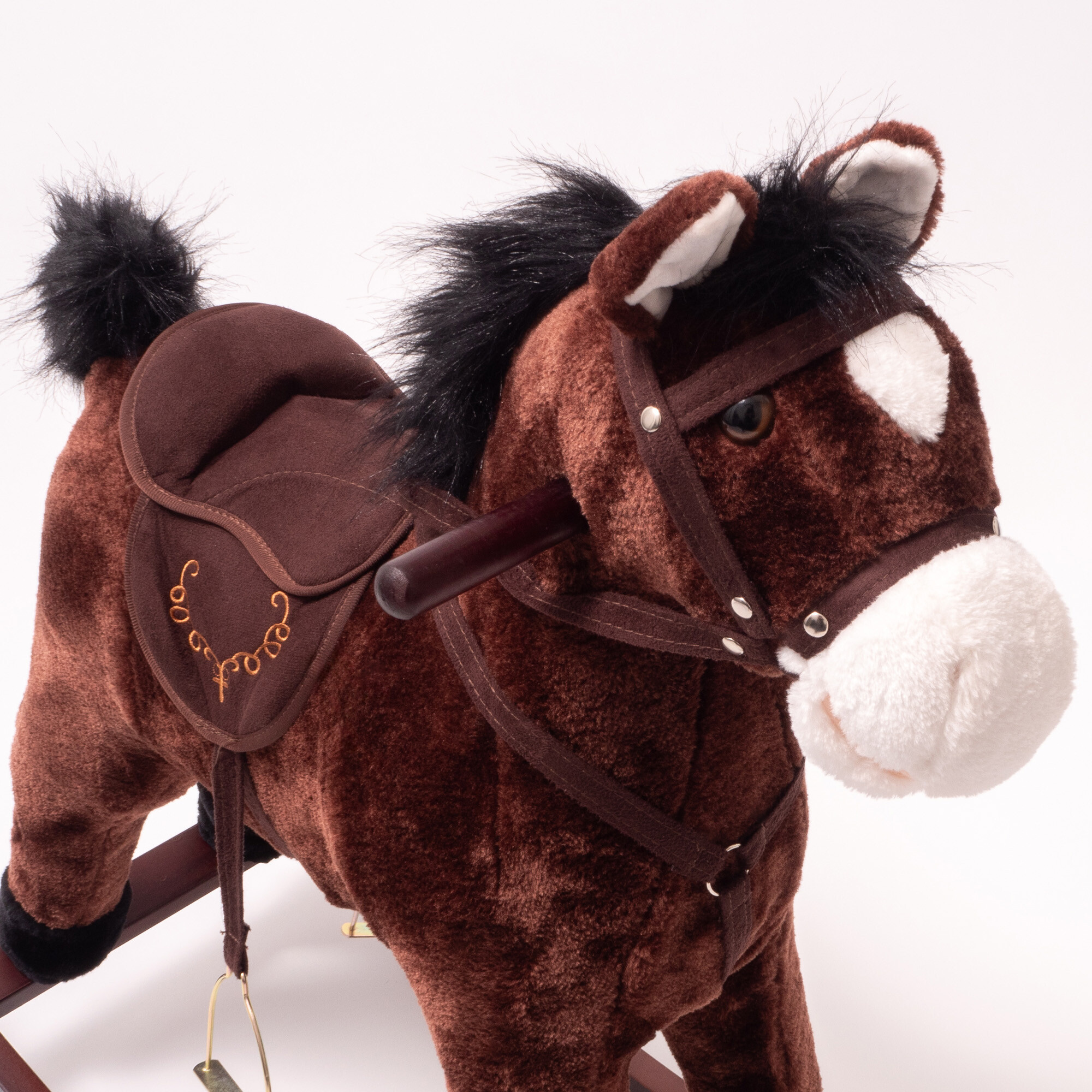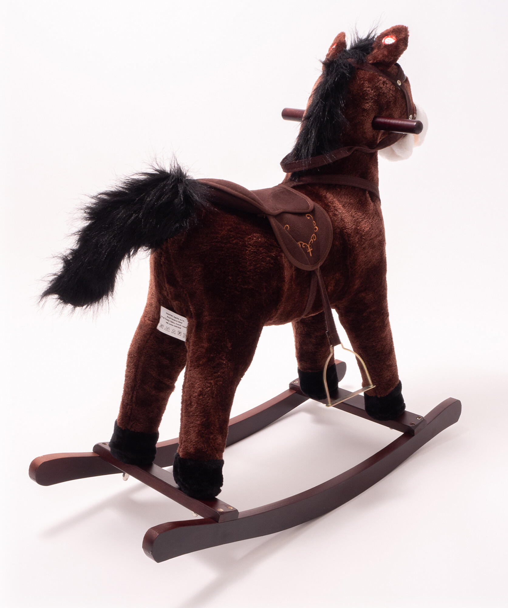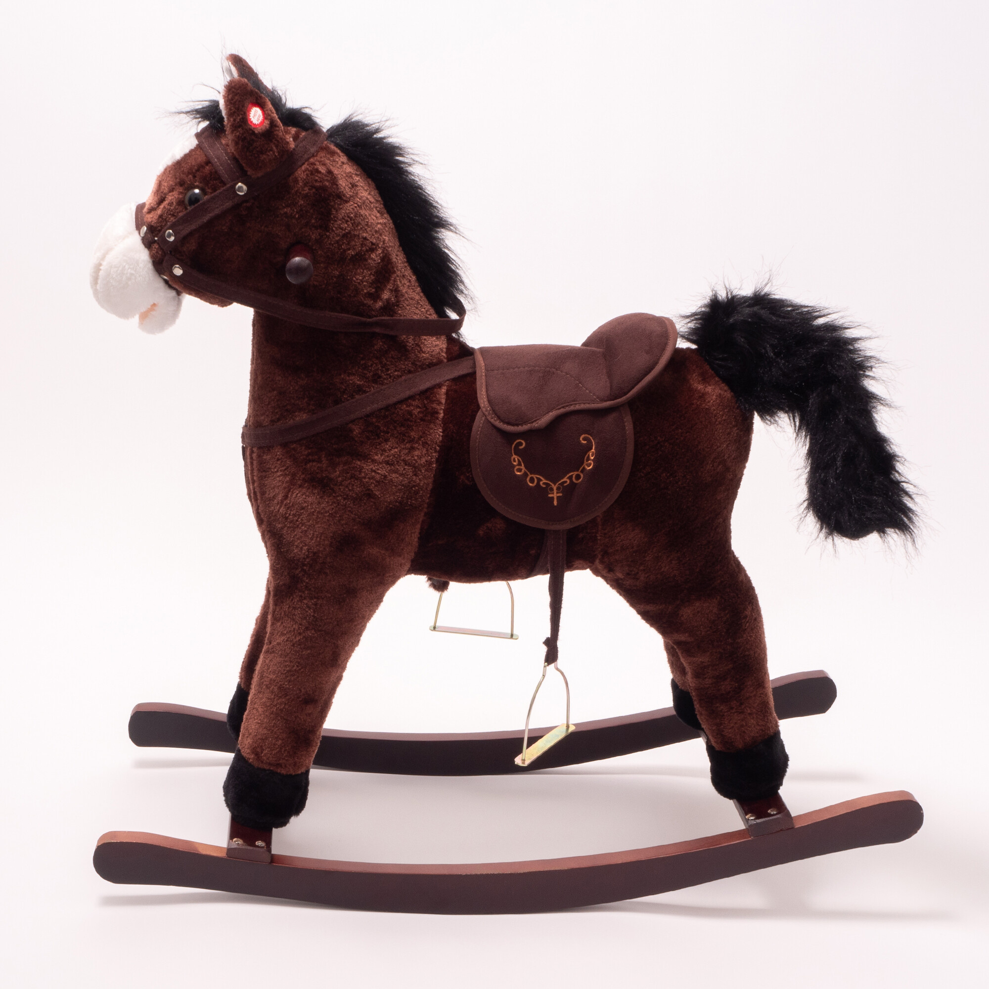 Houpací koník je vyroben z kvalitního plyše a dřeva, což zajišťuje jeho dlouhou životnost a bezpečnost pro vaše děti. Jeho realistický vzhled a jemný plyšový povrch zaručují, že se stane oblíbeným společníkem každého malého jezdce. S rozměry 74 cm na výšku, 76 cm na délku a 28 cm na šířku je koník dostatečně velký, aby poskytl pohodlnou jízdu, ale zároveň kompaktní, aby se vešel do každého dětského pokoje.