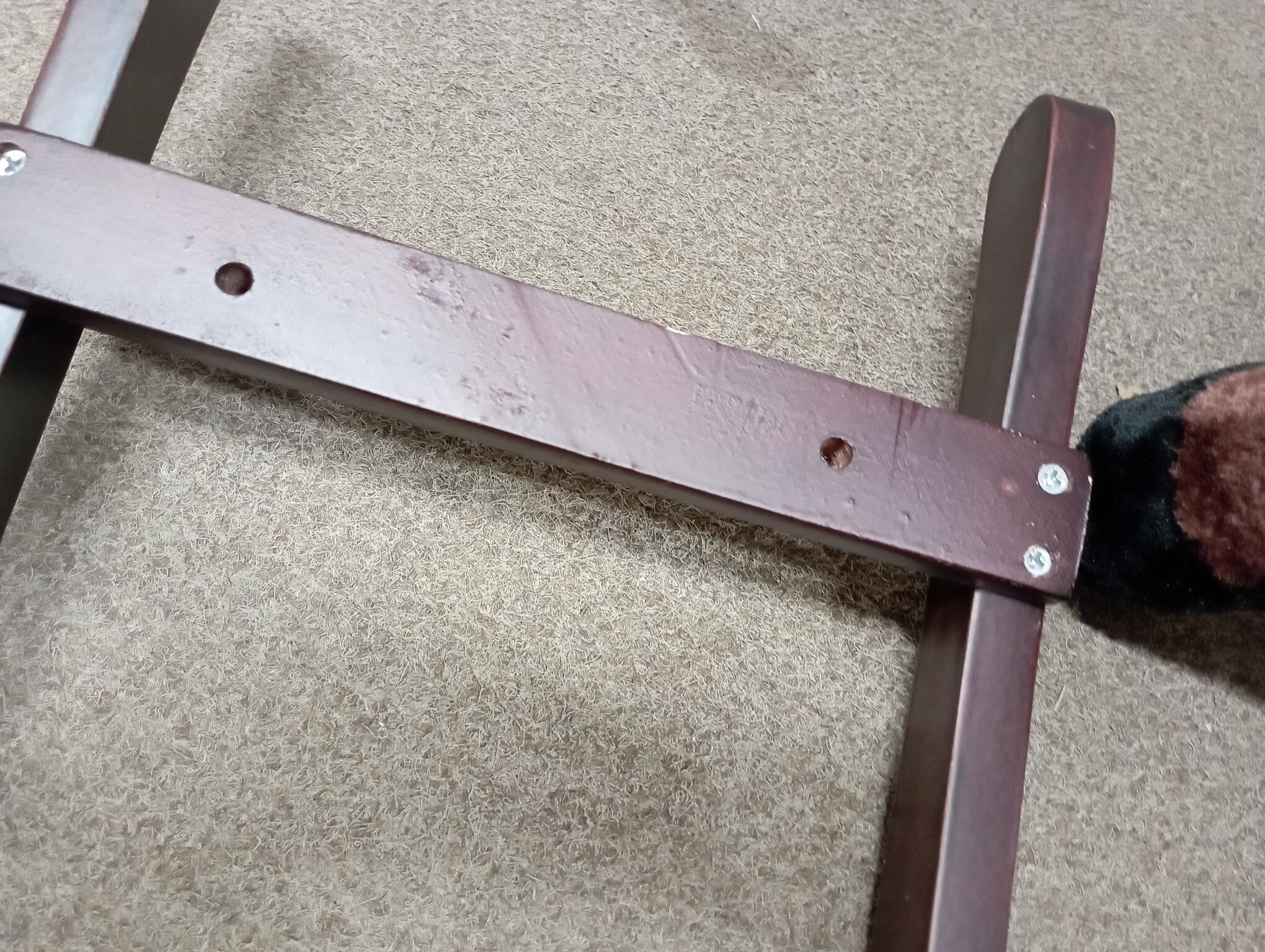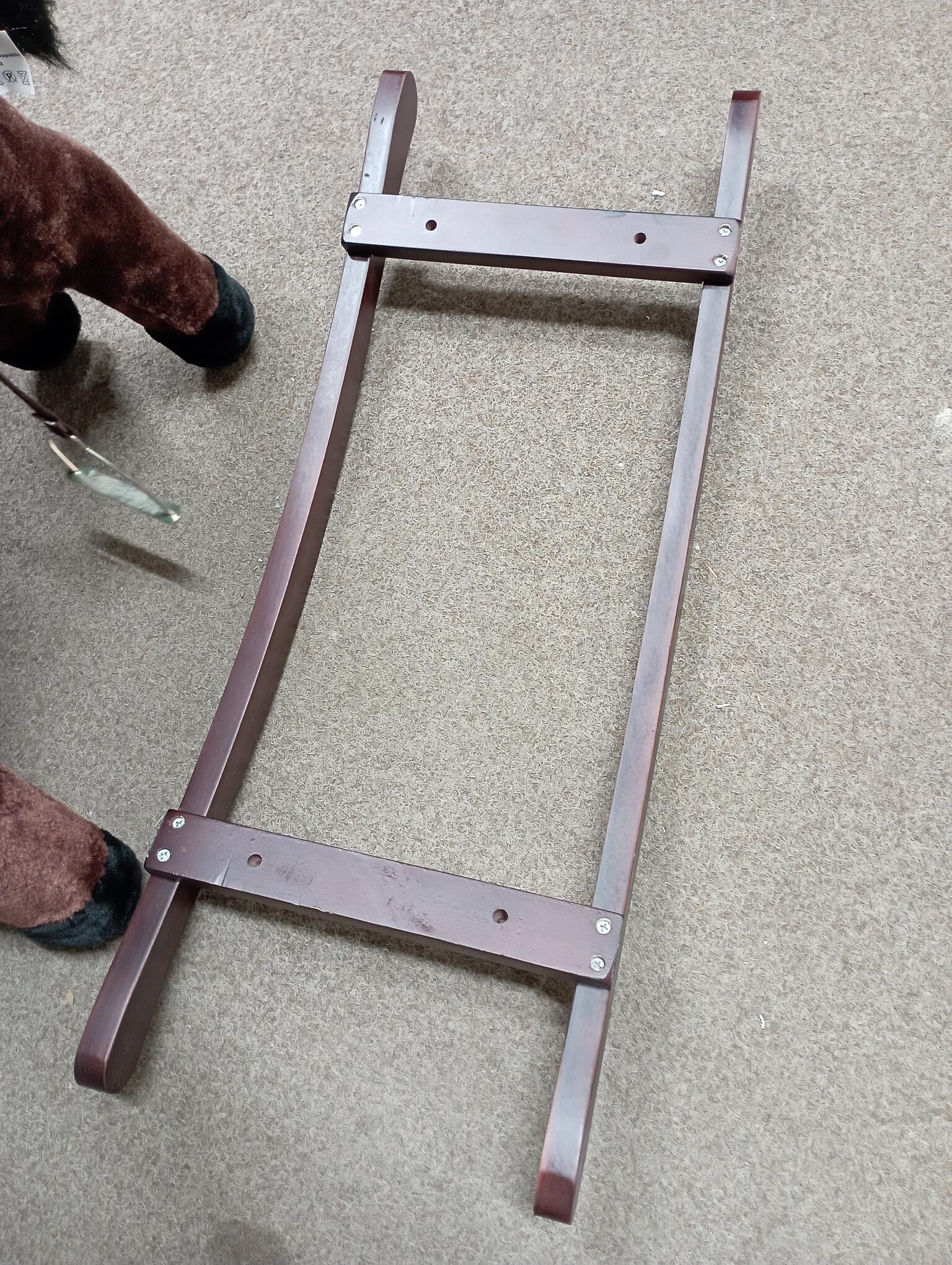 Tento kus nehýbe ocasem ani pusou. Dřevěná spodní houpací část je mírně podřená (viz fotografie). Vady jsou funkční i vzhledové, ale nemají vliv na možnost houpání.