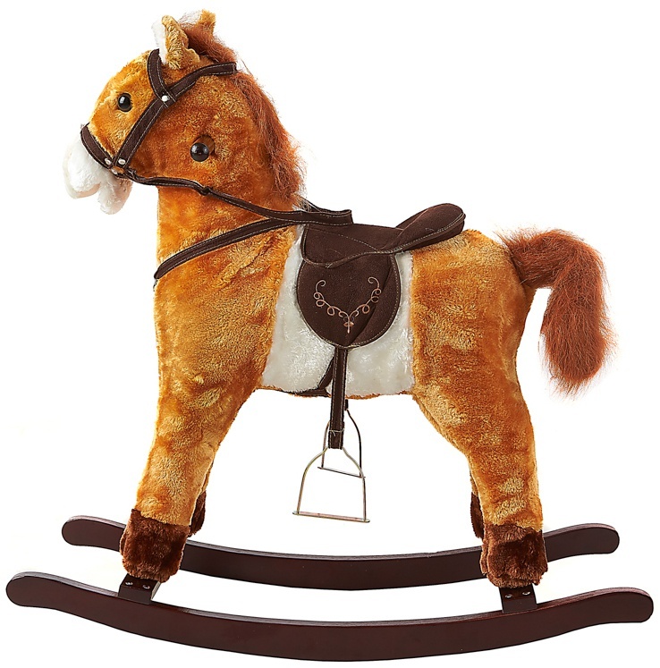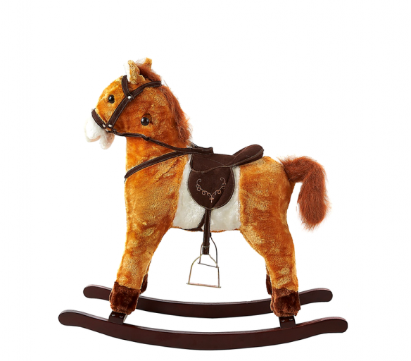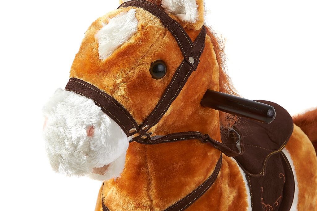 Neobyčejně krásný houpací koník s mnoha vychytávkami. Po zmáčknutí oušek koník vydává zvuky řehtání, cválání, hýbe ohaňkou a tlamou.