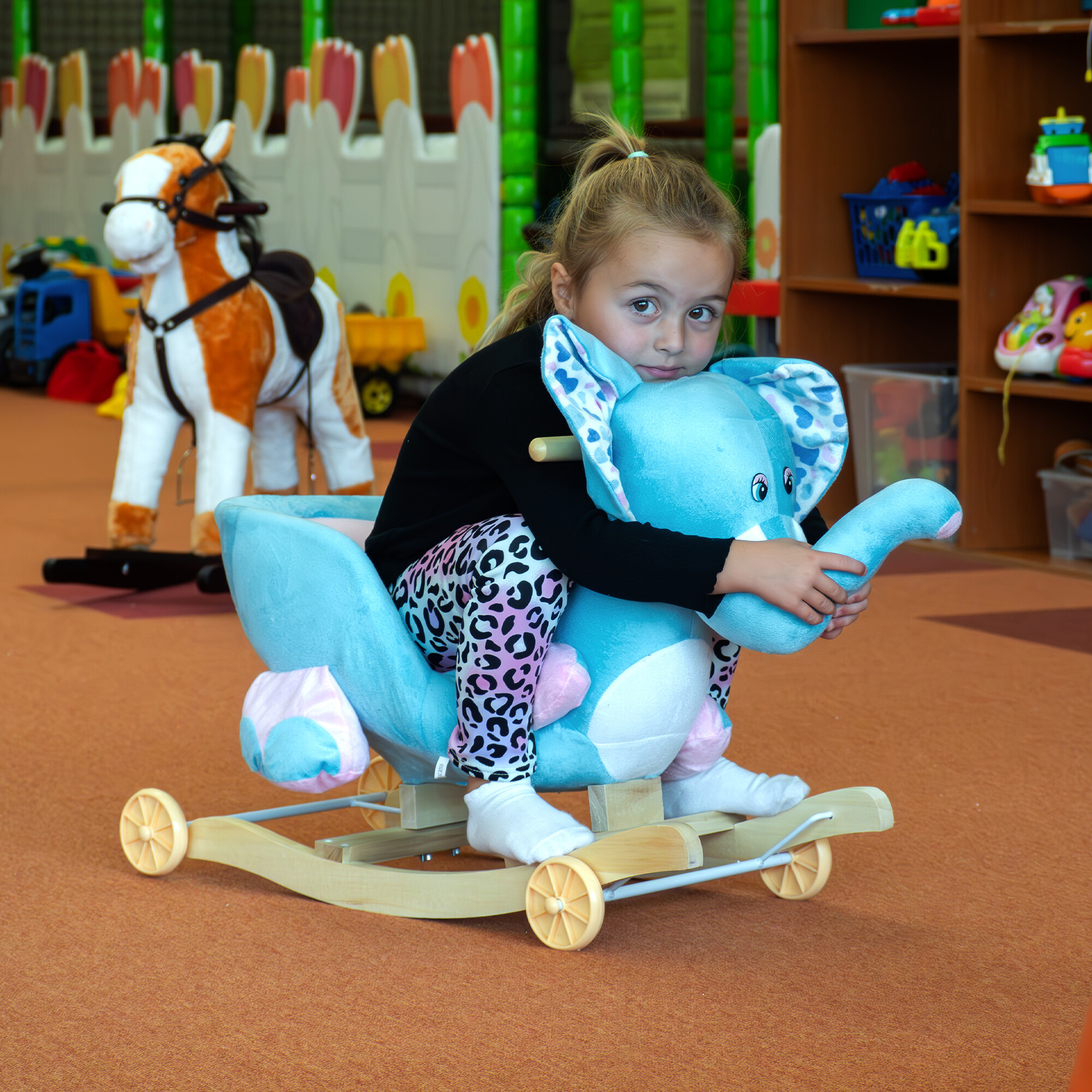 Houpací sloník ukrývá mnoho překvapení a zajistí zábavu na dlouhé hodiny. Vyrobena je z vysoce kvalitních materiálů, přizpůsobena dítěti tak, aby mu poskytla co nejvíce zábavy a pohodlí.