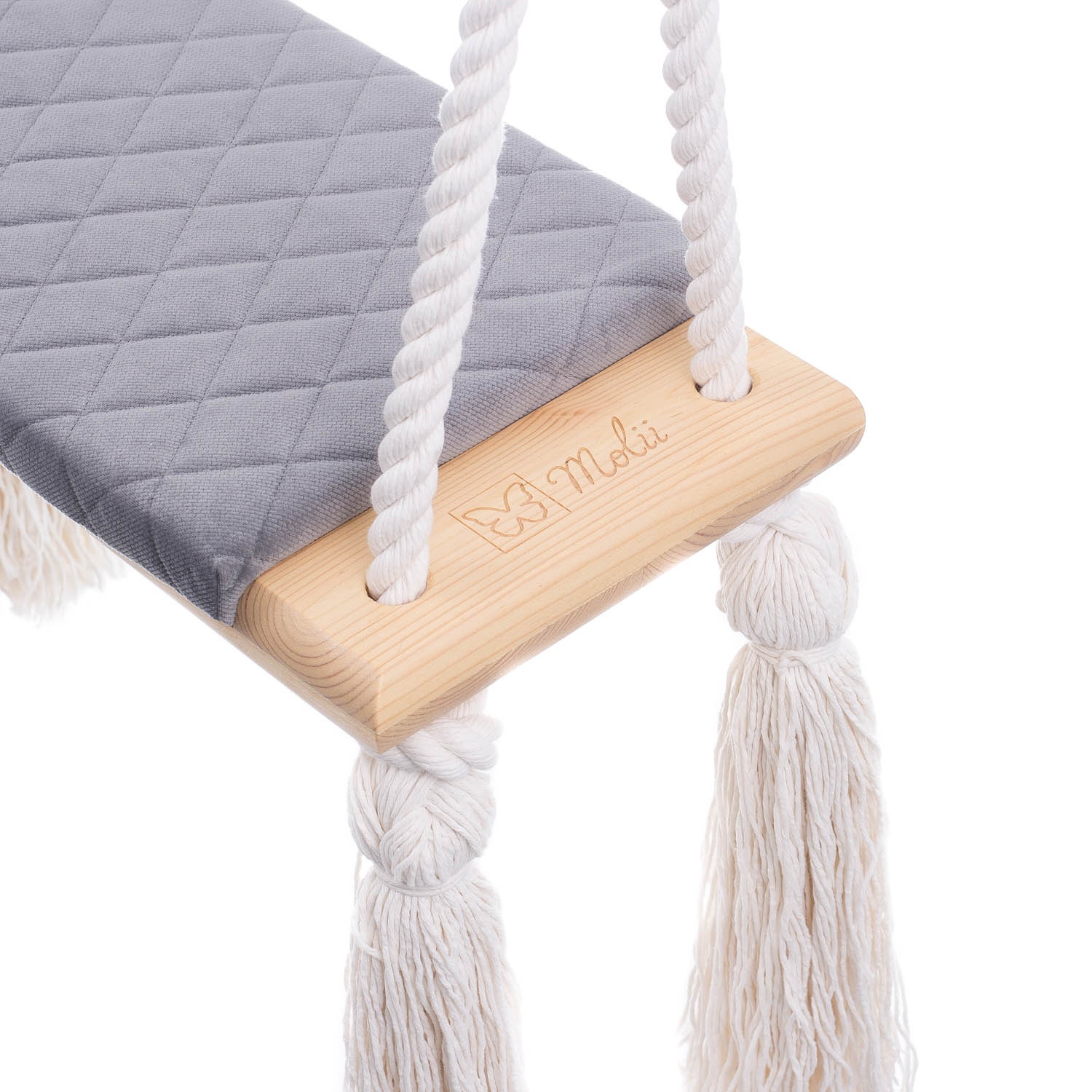 Pokud je látka špinavá, otřete ji měkkým hadříkem. Borovicové dřevo, které tvoří rám, poskytuje záruku vysokého standardu produktu. Houpačka je vybavena robustními bavlněnými lany, které vydrží zatížení až 25 kg.