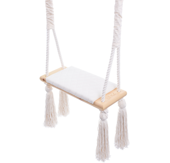 Pokud je látka špinavá, otřete ji měkkým hadříkem. Borovicové dřevo, které tvoří rám, poskytuje záruku vysokého standardu produktu. Houpačka je vybavena robustními bavlněnými lany, které vydrží zatížení až 25 kg.