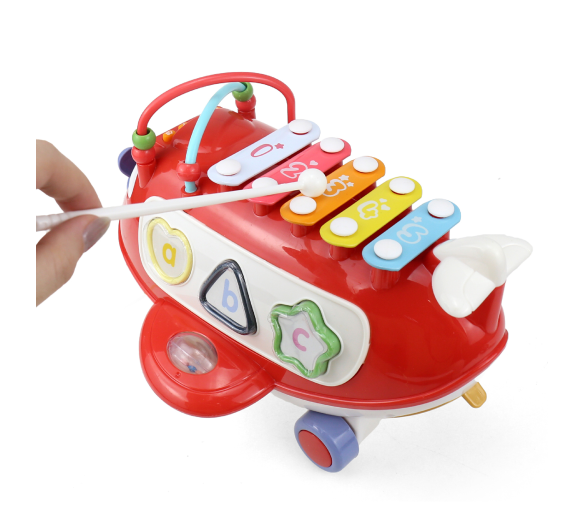 Interaktivní letadýlko s tříděním tvarů, chrastítkem a xylofonem je skvělá vzdělávací hračka pro vaše dítě, která rozvíjí jeho jemnou motoriku a hudební schopnosti.